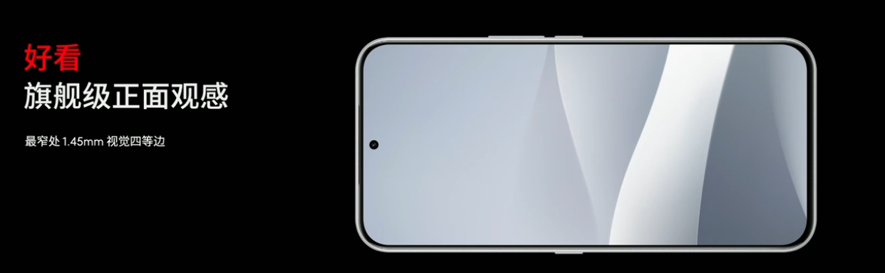 外观:1.45mm 视觉四等边,2.5D 微弧手感,等深四曲 3D 背盖