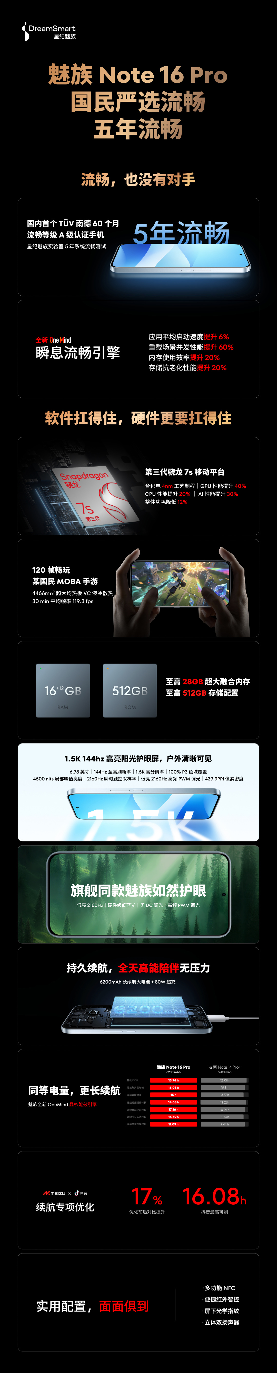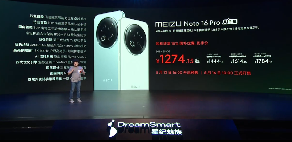 京东魅族 Note 16 Pro1499 元起国补后 1274.15 元起直达链接