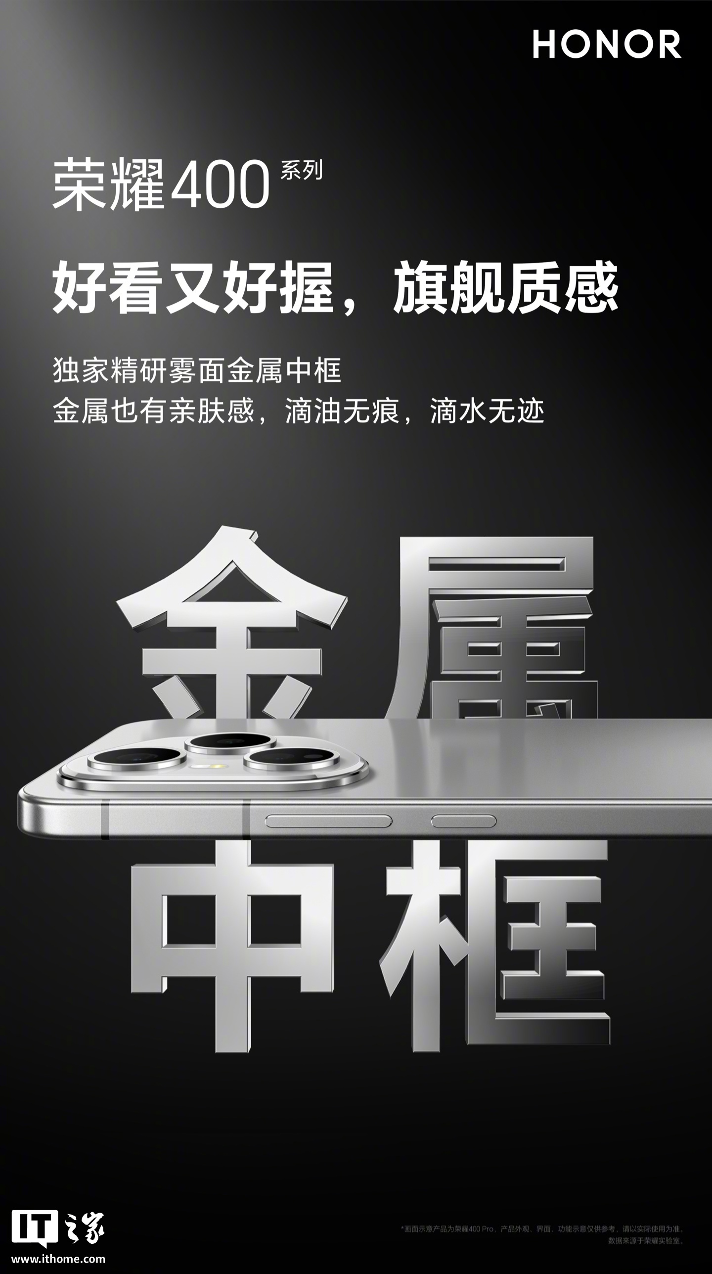 文章来源于互联网:荣耀 400 系列手机预热:直屏 + 全系金属中框设计、独家精研雾面工艺