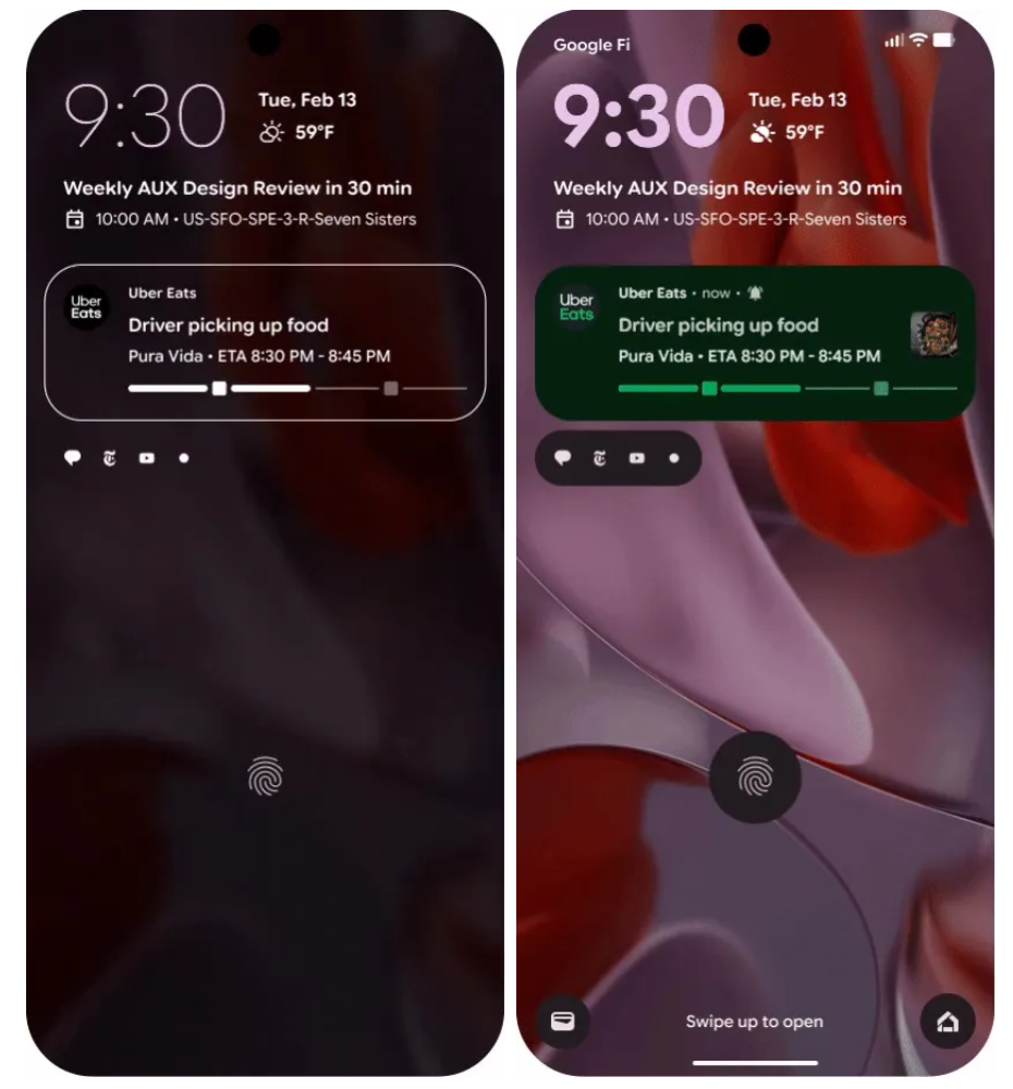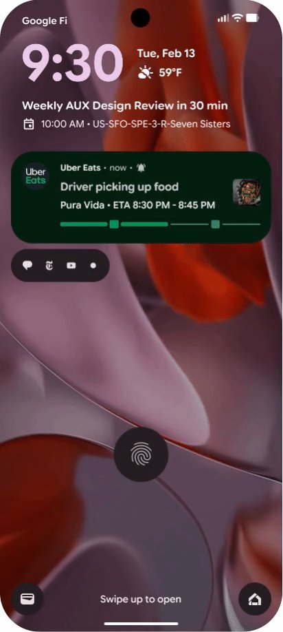 谷歌安卓 16 系统调整了 Pixel 锁屏布局,At a Glance 小部件中的日期和天气信息从下方移至时钟右侧,紧凑通知架作为可选设置,将原本的完整通知预览简化为小型、半透明的图标芯片,位于 At a Glance 小部件下方,确保不会遮挡壁纸。