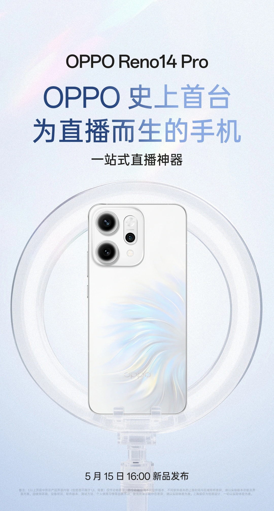 IT之家 5 月 15 日消息,OPPO Reno14 Pro 手机今日正式发布,号称是“OPPO 史上首台为直播而生的手机”。