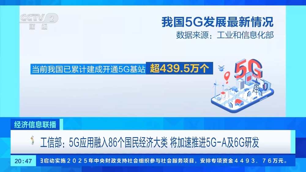 最新数据显示,当前我国已累计建成开通 5G 基站超 439.5 万个、5G 应用融入 97 个国民经济大类中的 86 个。目前,速率更高、性能增强的 5G-A 网络已在各类生产生活场景逐步试点落地。