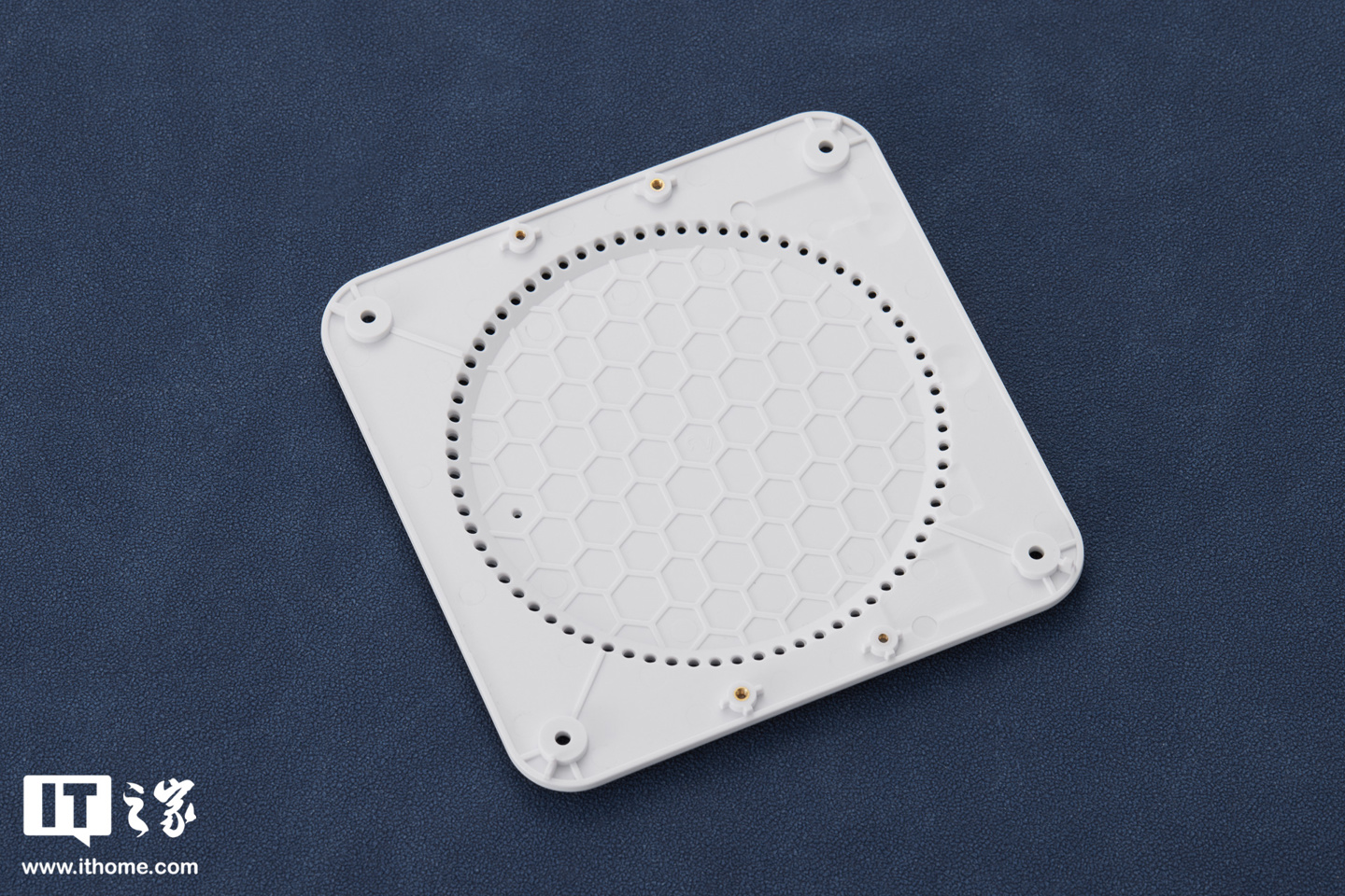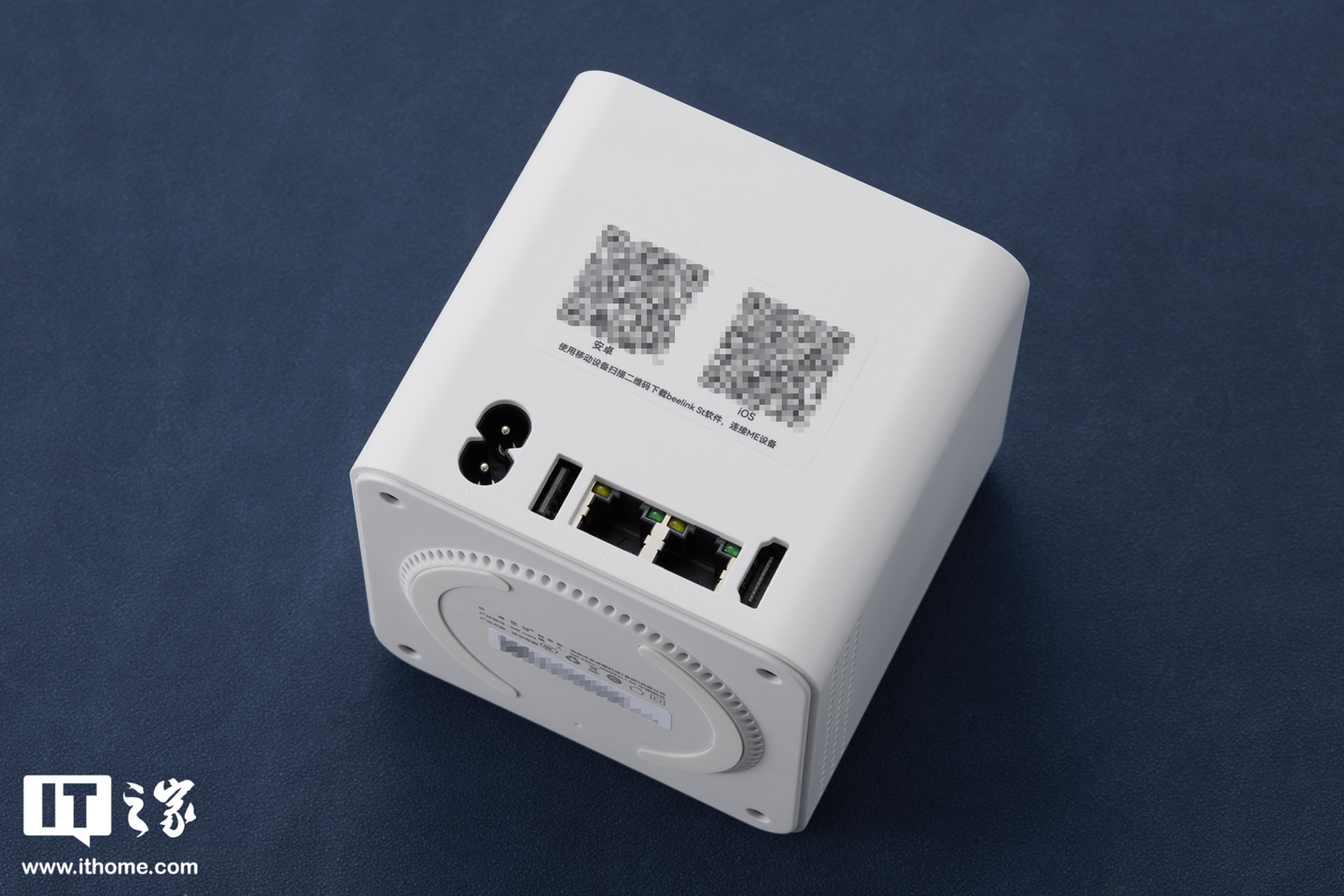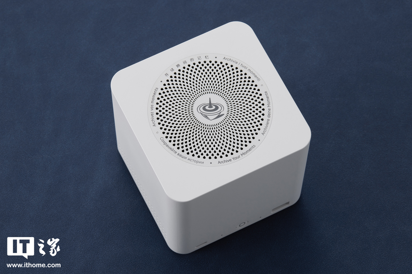 说到蜂巢,其顶部水滴散热孔集中且密集,暗含「数据汇聚」隐喻。这款珍珠白配色有着类似于陶瓷般的光泽表现,也打破了大部分人想象中关于 NAS 设备「黑匣子」类的刻板印象,同时让它看起来不会太过于单调。