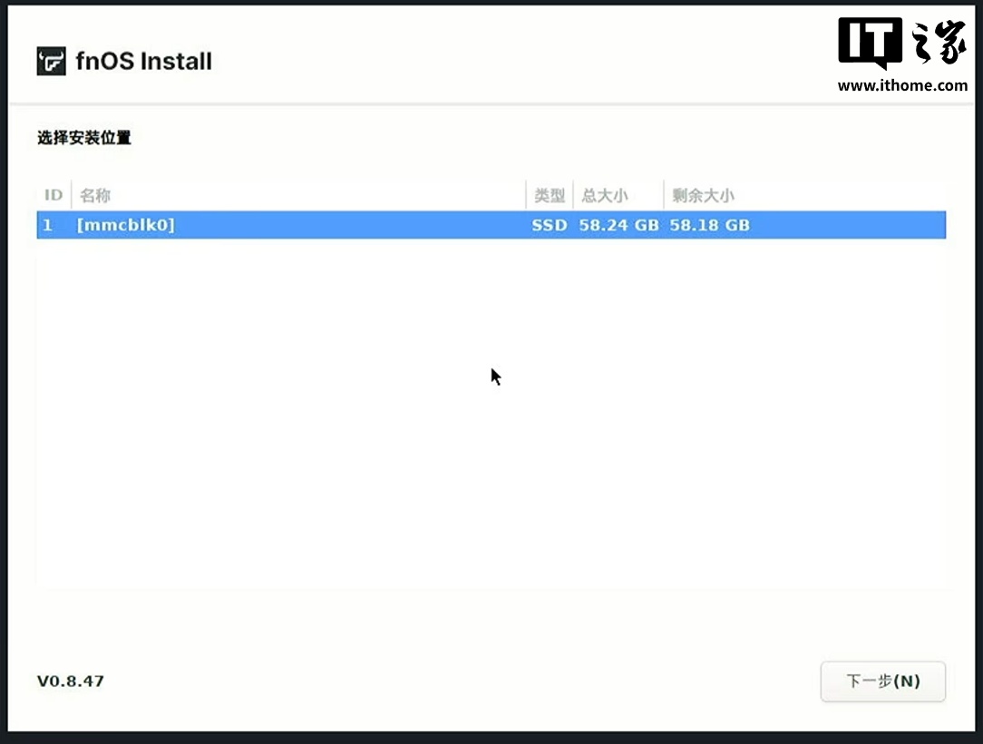 ME mini 可以使用自带的 64G eMMC 存储来进行安装。IT之家也尝试了在固态硬盘中安装 NAS 系统,实际体验略有改善,但不明显。如果是安装在 eMMC 中则能够更充分地利用 SSD 存储空间。各位可自行选择适合自己的存储方案。