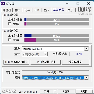 我们这里通过 CPU-Z 简单测试一下,单核接近 300 分,多核 1000~1150 分左右,作为 NAS 处理器来说绝对是足够的。