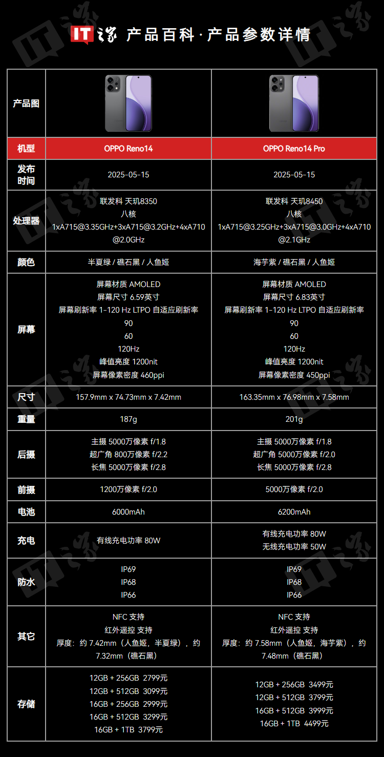 OPPO Reno14 Pro(6.83 英寸)、OPPO Reno14(6.59 英寸)