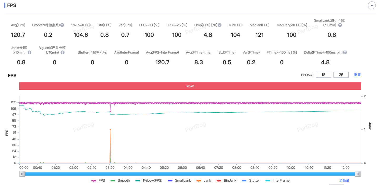 IT之家这里实测了 120 帧高画质的《王者荣耀》,实测 OPPO Reno14 全程稳帧 120fps,达到了 120.7fps,整体表现相当令人满意。