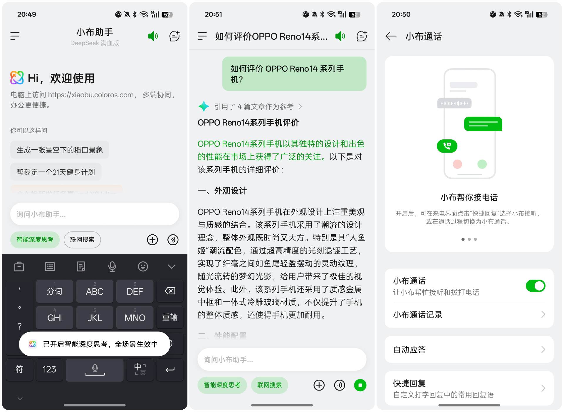 系统方面,OPPO Reno14 搭载 ColorOS15,支持自由分屏、全新自由浮窗,小布助手融合 DeepSeek 实现深度回答,支持一键问屏、AI 意图搜索、AI 帮写。此外,ColorOS 与剪映达成合作,视频可 2 倍速快速导出。