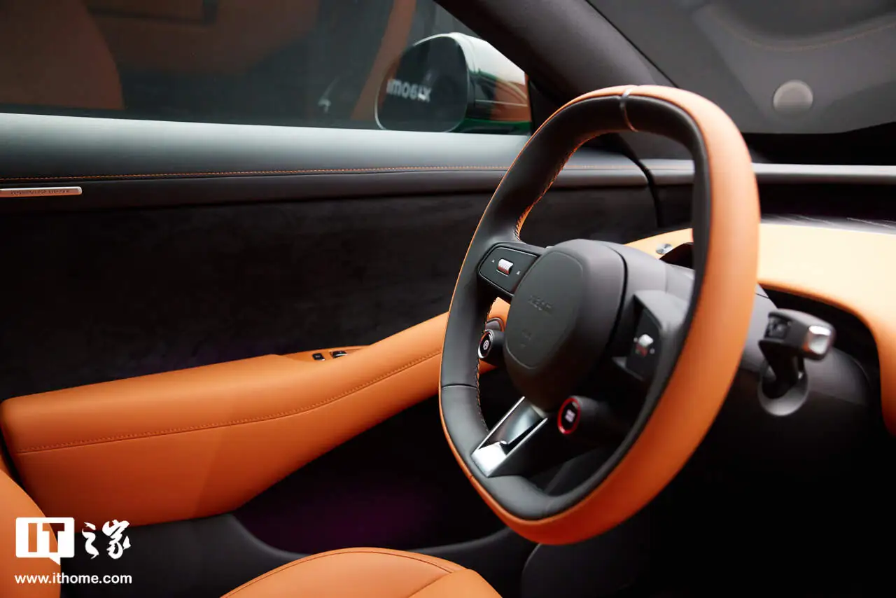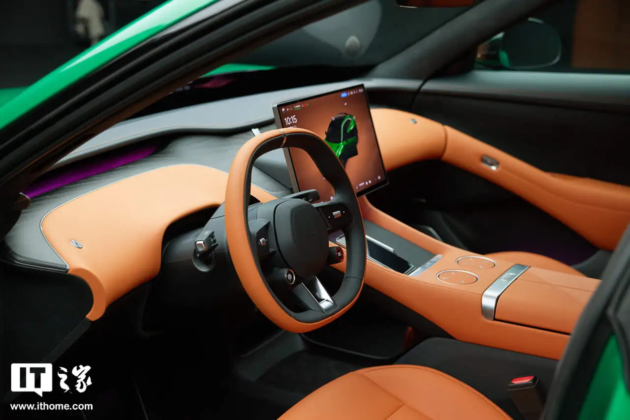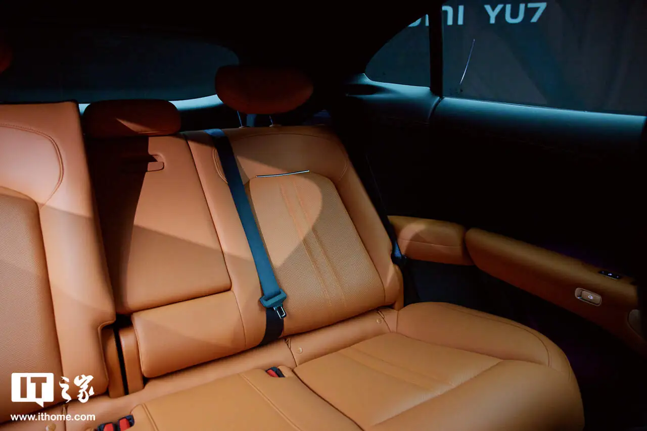 内饰提供了浅色系的松石灰,以及深色系的珊瑚橙、暮影蓝,细节上,YU7 全舱高频接触面 100% 软质包覆,并获得 OEKO-TEX 一级国际认证,座椅应用 Nappa 牛皮包覆。