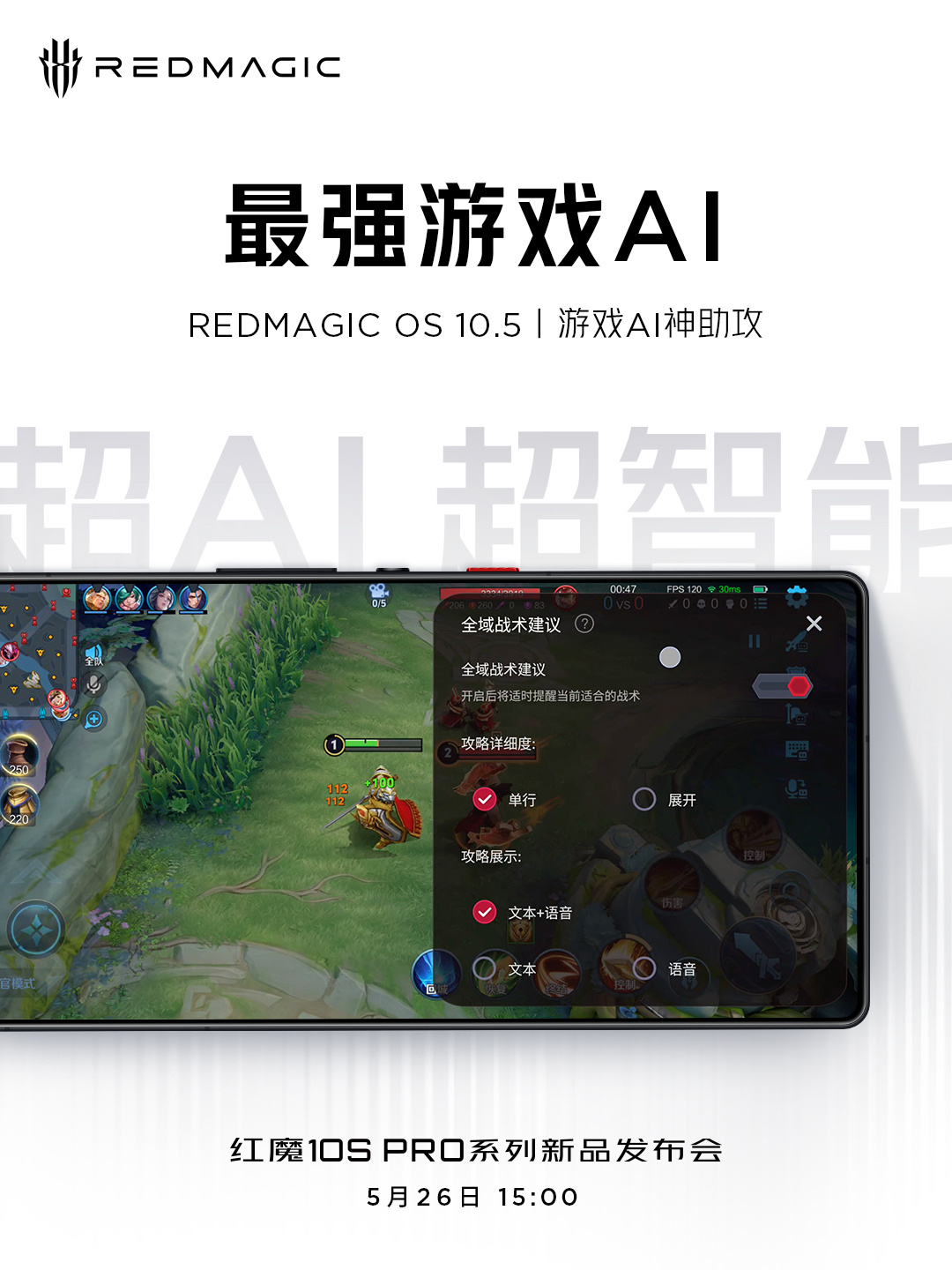 根据红魔游戏手机官方最新预热,红魔 10S Pro 系列手机搭载 REDMAGIC OS 10.5,内置“最强游戏 AI”。具体来看,新机将拥有魔姬 AI 智能体 2.0,支持 AI 语音操控、AI 战术建议、AI 连麦字幕等功能。