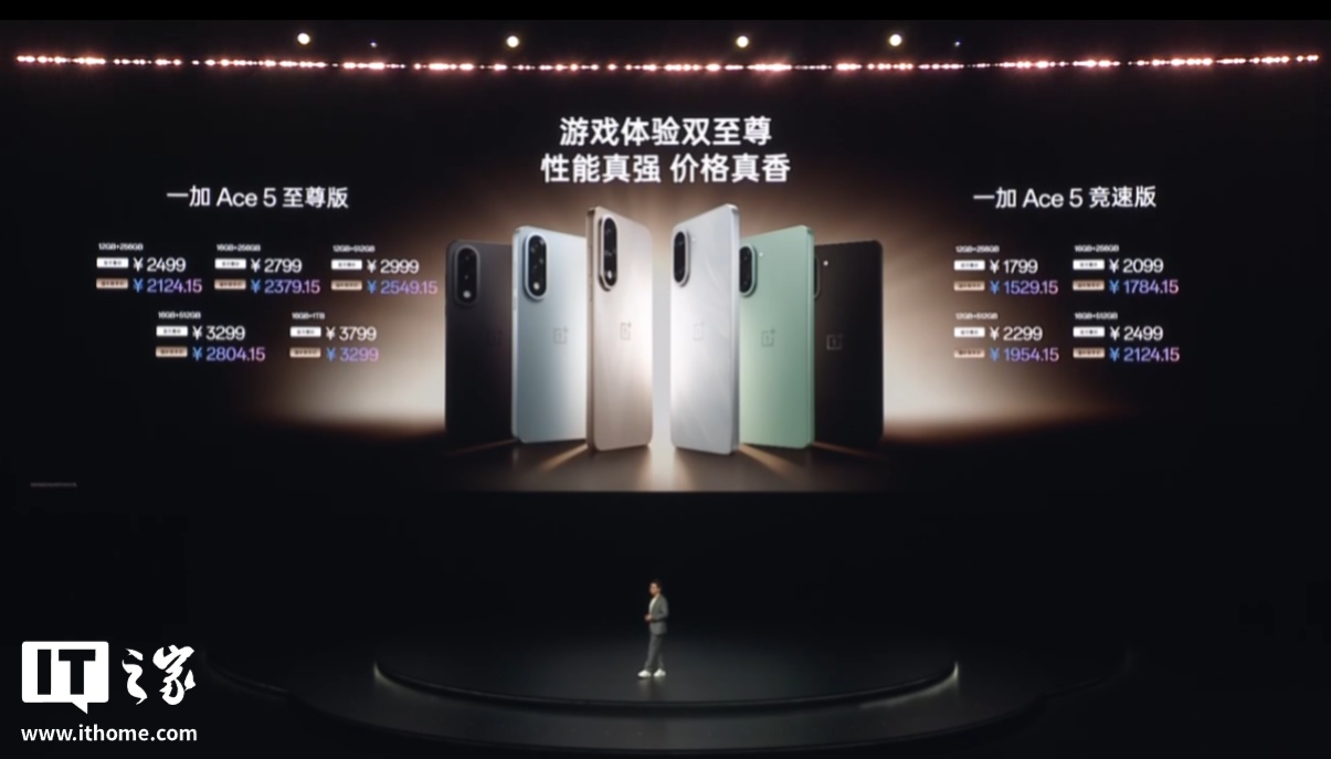 一加 Ace 5 竞速版手机定位 2K 档,号称“降维打击”,IT之家整理各版本售价如下: