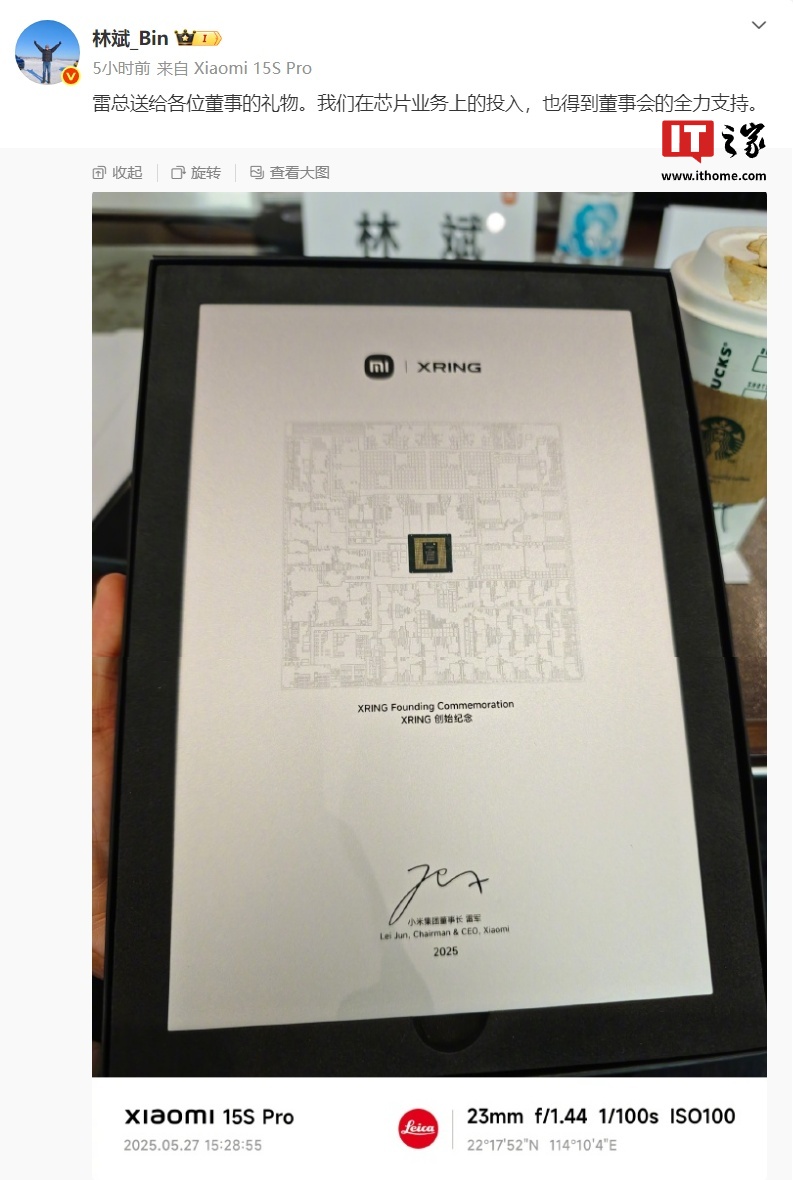 据IT之家昨日报道,小米联合创始人、副董事长林斌晒出图片,展示了雷军向各位董事送上的小米玄戒芯片的创始纪念品。林斌还表示:“我们在芯片业务上的投入,也得到董事会的全力支持。”