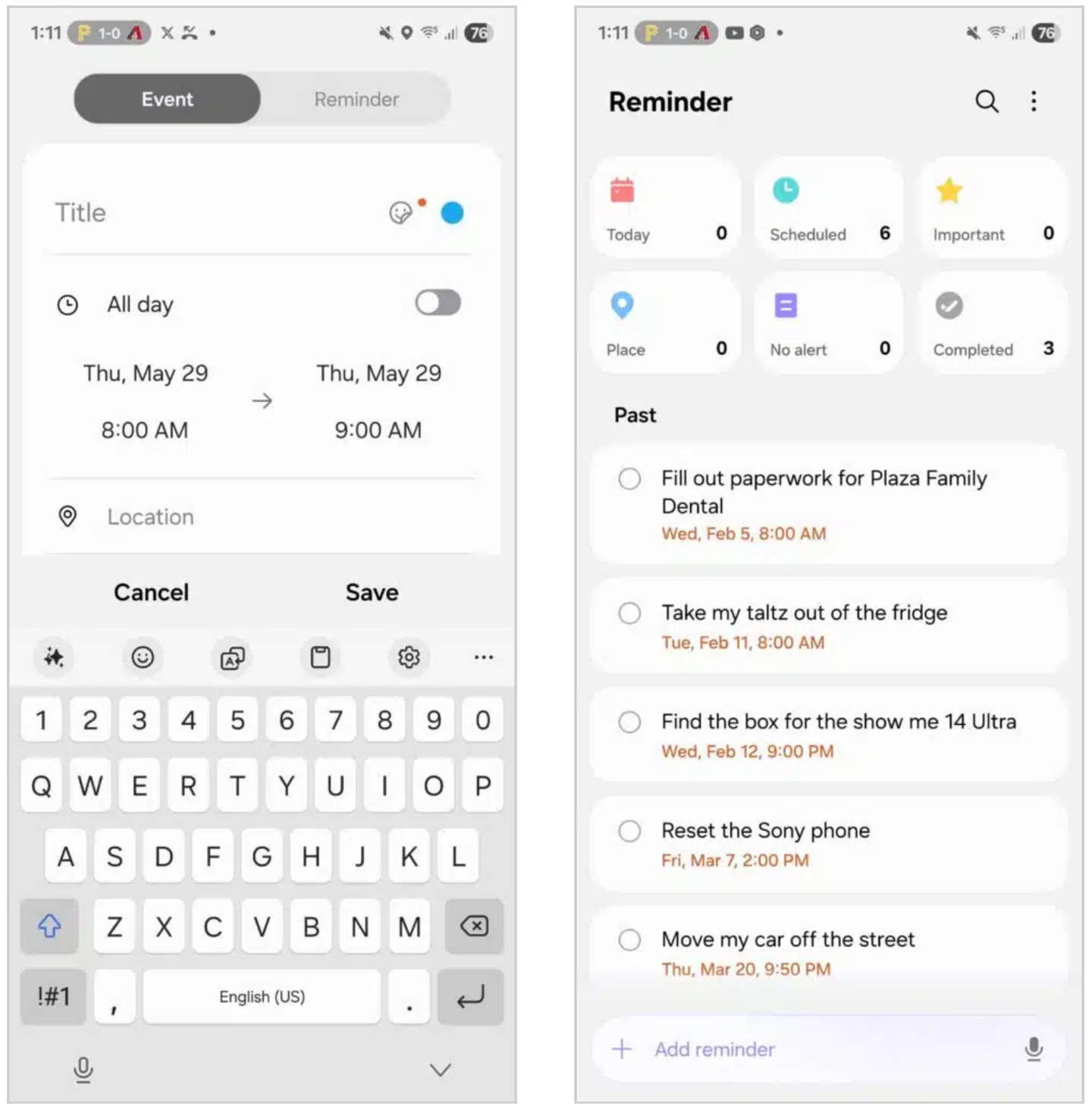 One UI 8 焕新了提醒事项(Reminder)和日历(Calendar)应用,带来更简洁的外观和更智能的功能。