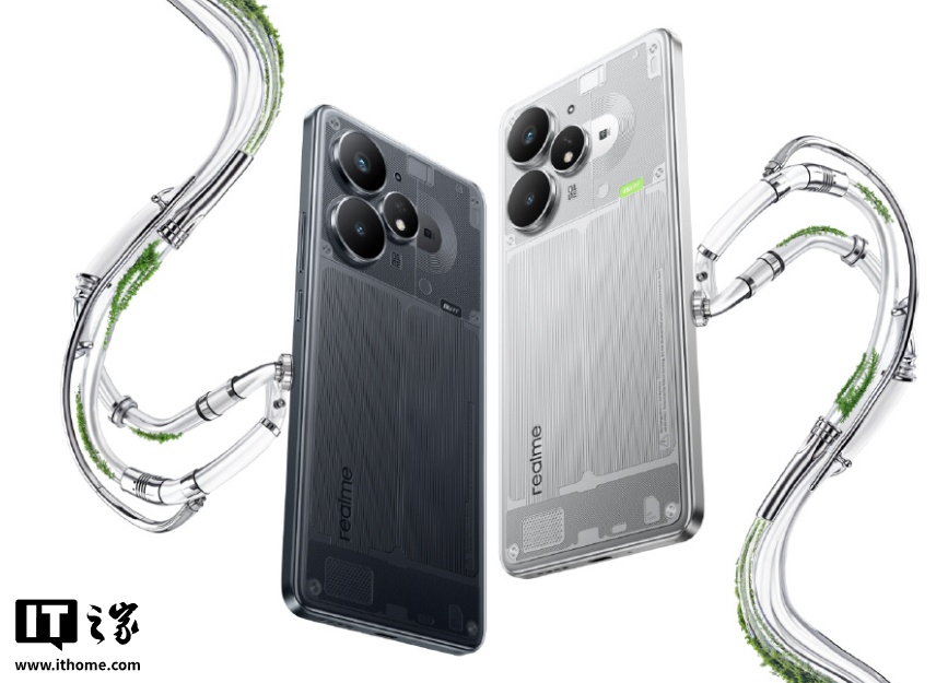 IT之家从官方介绍获悉,真我 Neo7 Turbo 采用“透明新生设计”,共有“透明黑”“透明灰”两款配色,近乎 1:1 还原内部结构,还有 NFC 灵透线圈、背板晶刻纹理、闪能 DART 标。