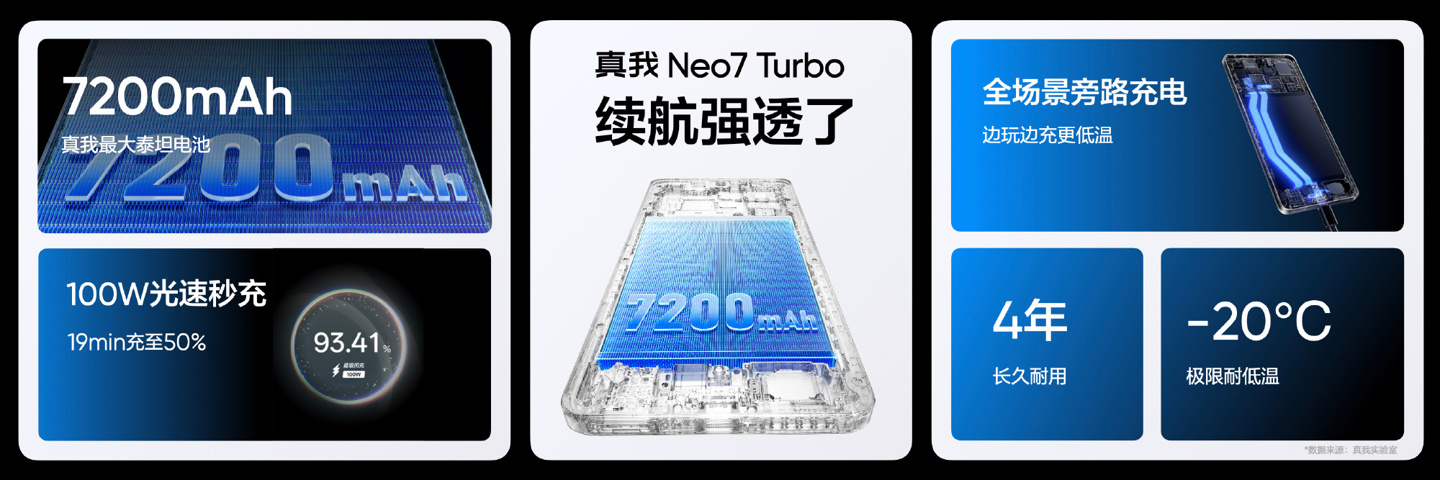 文章来源于互联网:realme 真我 Neo7 Turbo 手机发布:天玑 9400e 芯片 + 7200mAh 电池,1999 元起