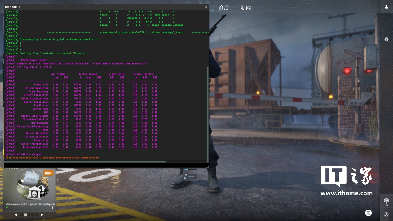 《CS2》这款游戏对于 CPU 性能较为敏感,以 1080P 分辨率 + 高画质运行创意工坊测试地图 CS2 FPS BenchMark,酷睿 Ultra 7 265K 处理器的游戏平均帧数为 505 帧,1% Low 帧为 188 帧,能够轻松跑满电竞高刷显示器。