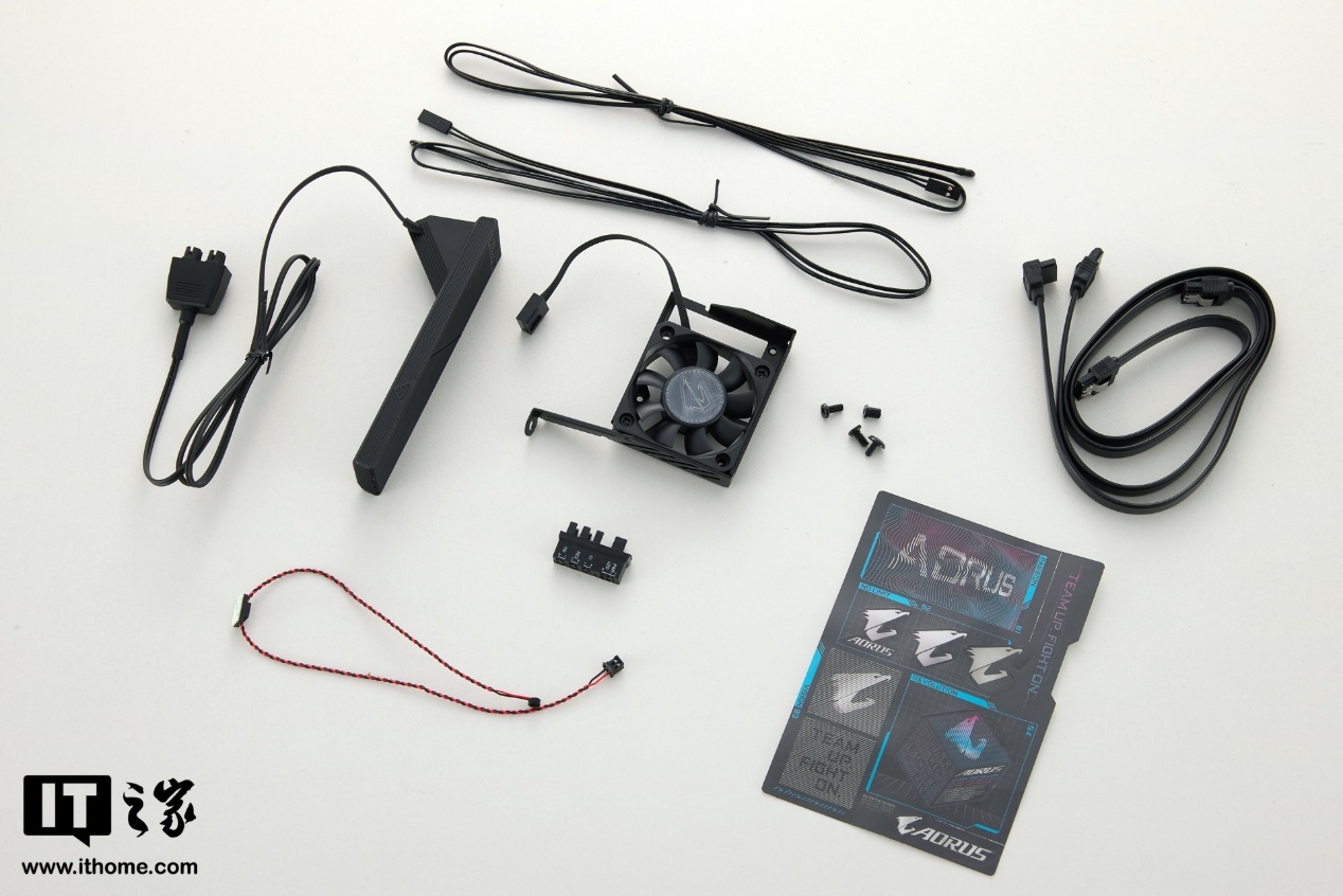 配件方面,除了常规的线材和螺丝备件外,技嘉 Z890 超级雕主板还提供了 1 个内存散热风扇、1 个 WiFi 增强天线。