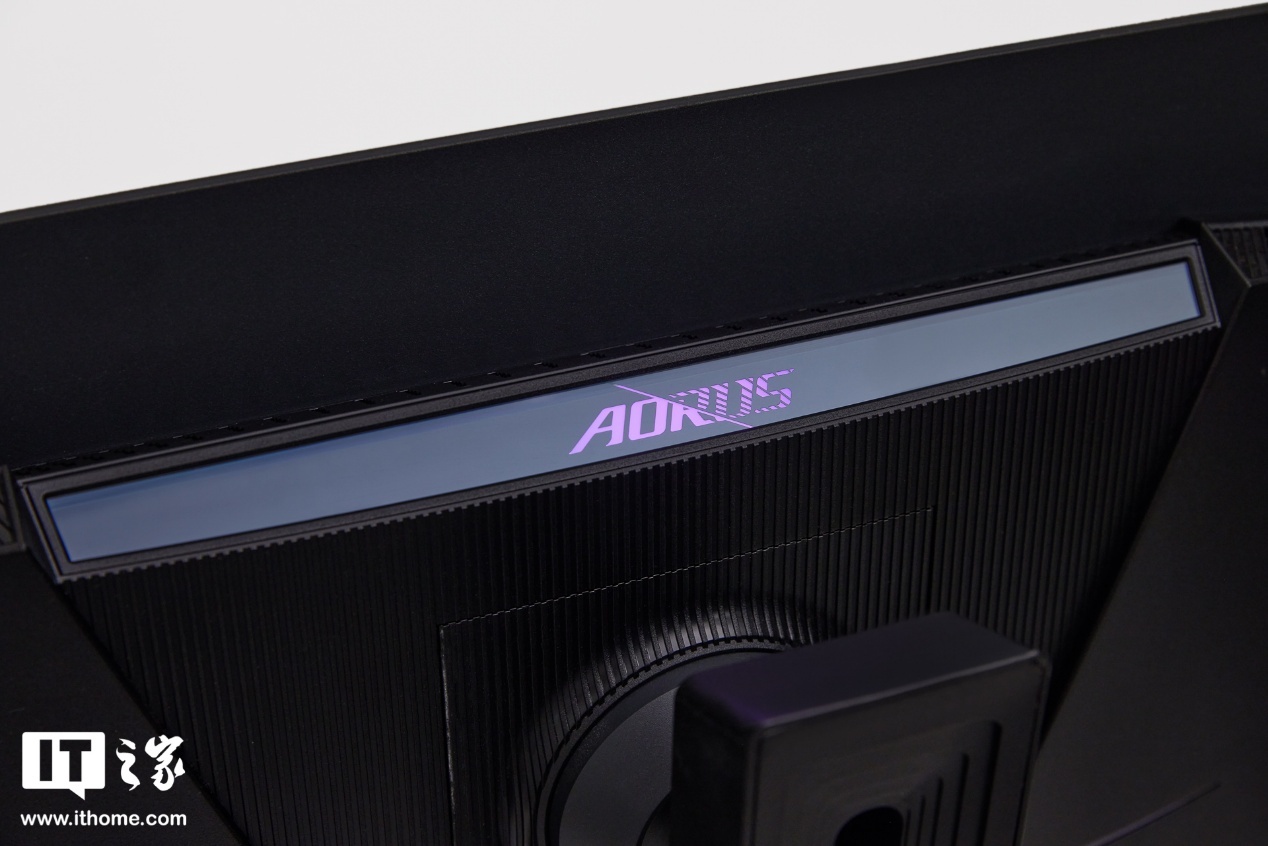 通过机身侧面的特写可以看到,OLED 面板的部分非常薄,让这款电竞显示器的科技风更强。IT之家使用技嘉 FO27Q3 的双模切换功能,即可将屏幕可视尺寸切换到 24.5 英寸 + 1080P 分辨率,同时保持高刷特性,1080P 游戏环节测试起来更加方便。