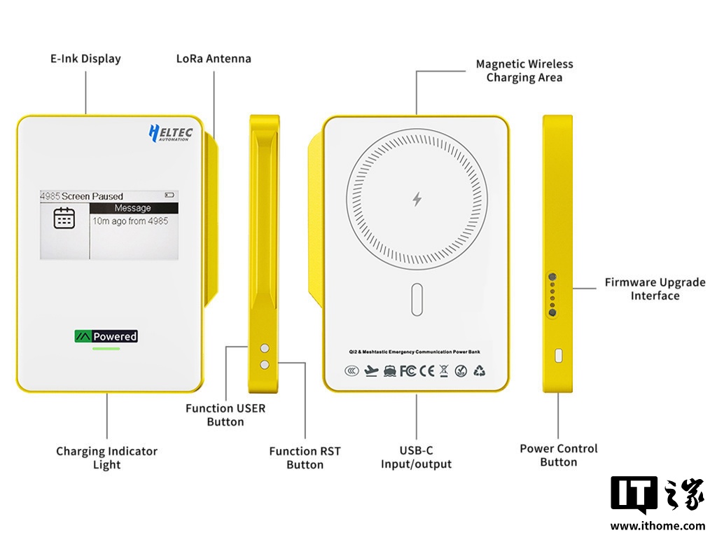 Heltec 致力于推广远程无线电技术(LoRa)和 Meshtastic 生态系统,曾推出多款开发板,此次的 MeshPocket 磁吸充电宝在入门技术层面进行了优化,不仅可作为无网通信的个人节点使用,还内置电池并支持 Qi2 无线充电协议。