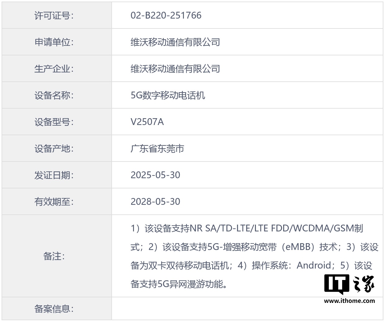 IT之家此前报道,型号 V2507A 的 vivo 于 5 月 30 日通过国内 3C 认证,支持 90W 快充,最初推测为 vivo X Fold 5 折叠屏手机。