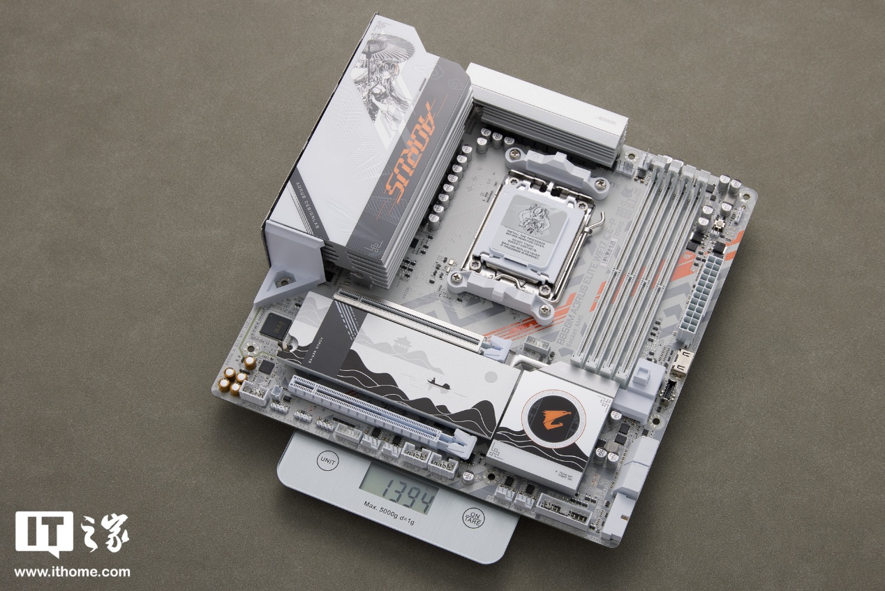 主板重量经过IT之家上秤实测,约 1.39 千克。