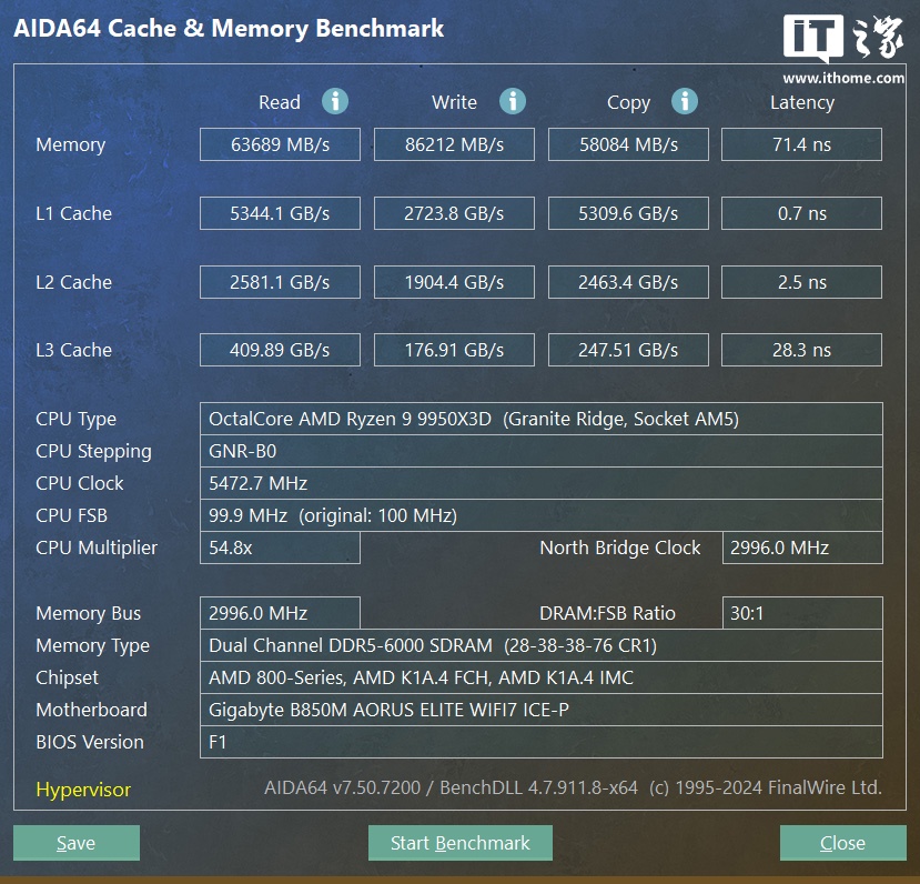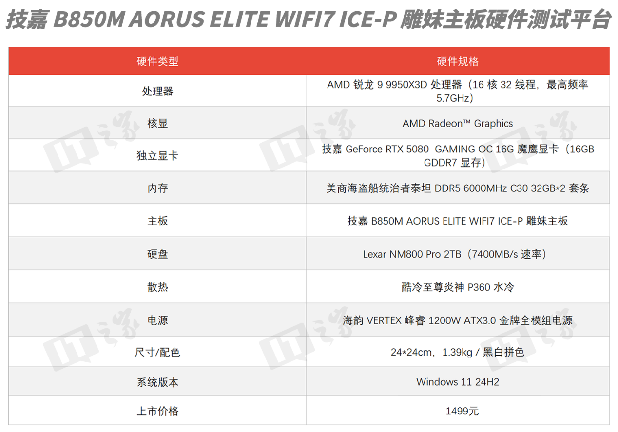 本次我们选择使用 AMD 最新推出的锐龙 9 9950X3D 处理器,搭配这块技嘉 B850M 雕妹主板进行实测,为了充分发挥处理器的性能,IT之家搭建了上图这套测试平台。