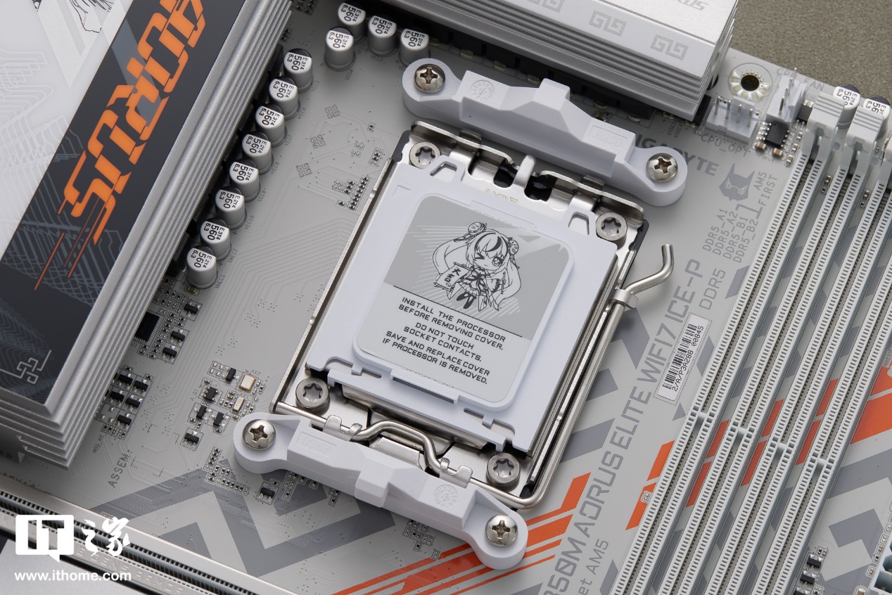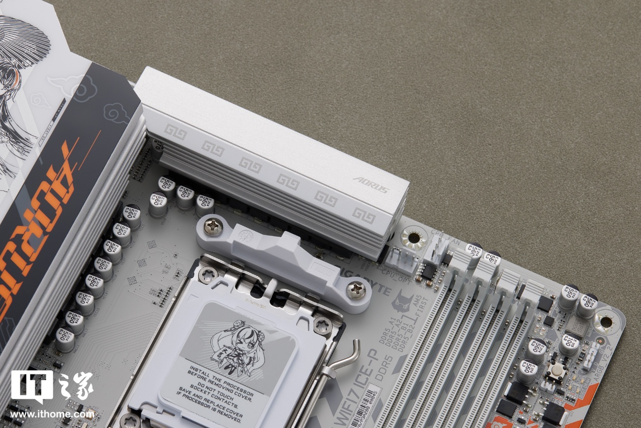 技嘉 B850M AORUS ELITE WIFI7 ICE-P 雕妹主板是雕妹系列的第二款新品,其水墨风格涂装与国风二次元相结合的外观设计令人眼前一亮,可以说雕妹系列主板打破了技嘉专注于硬核外观的固有印象,在 IP 破圈和潮流向设计上走得更远,目的自然是为了吸引年轻的新生代玩家们。