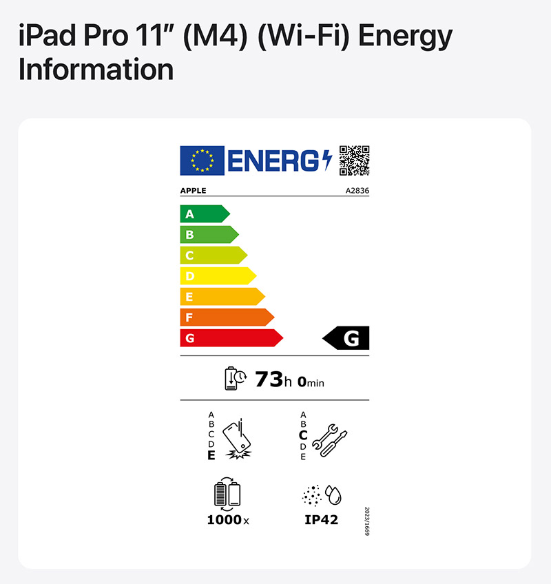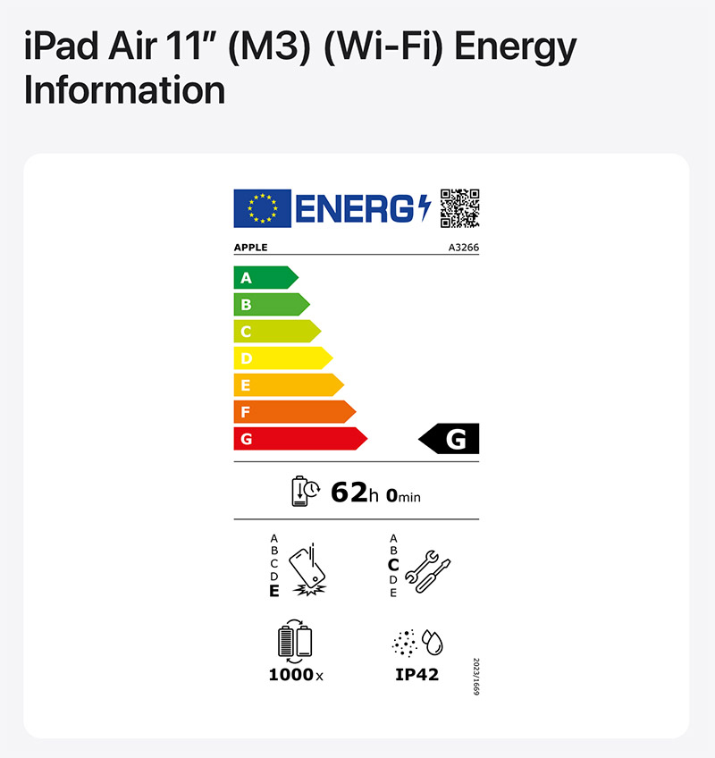 IT之家 6 月 21 日消息,苹果公司为遵守 6 月 20 日在欧盟区域生效的《能源标签和生态设计法规》,在欧盟国家的 iPhone 和 iPad 页面上添加了能效 EPREL 标签,并承诺后续在销售设备时附上印刷版标签。