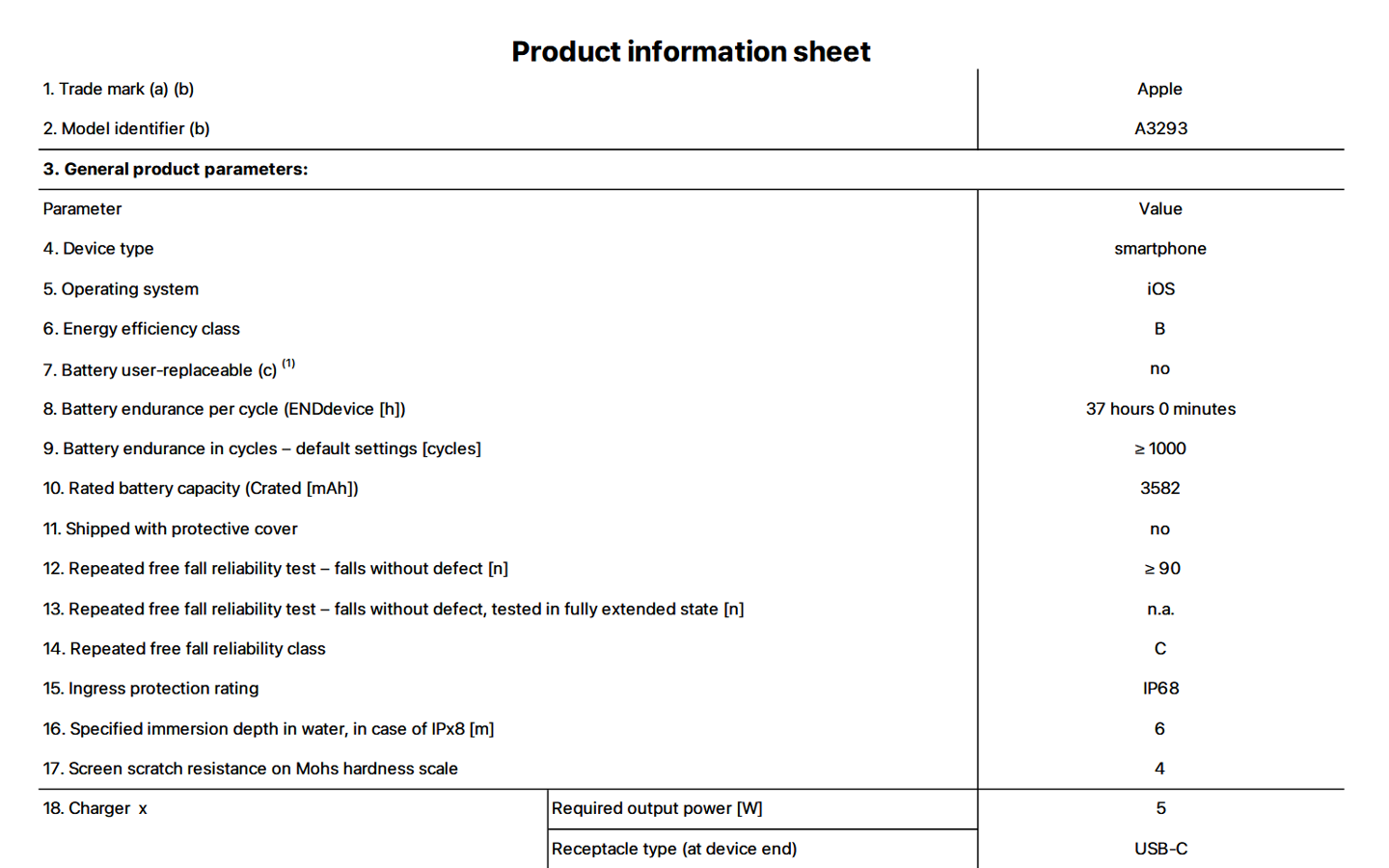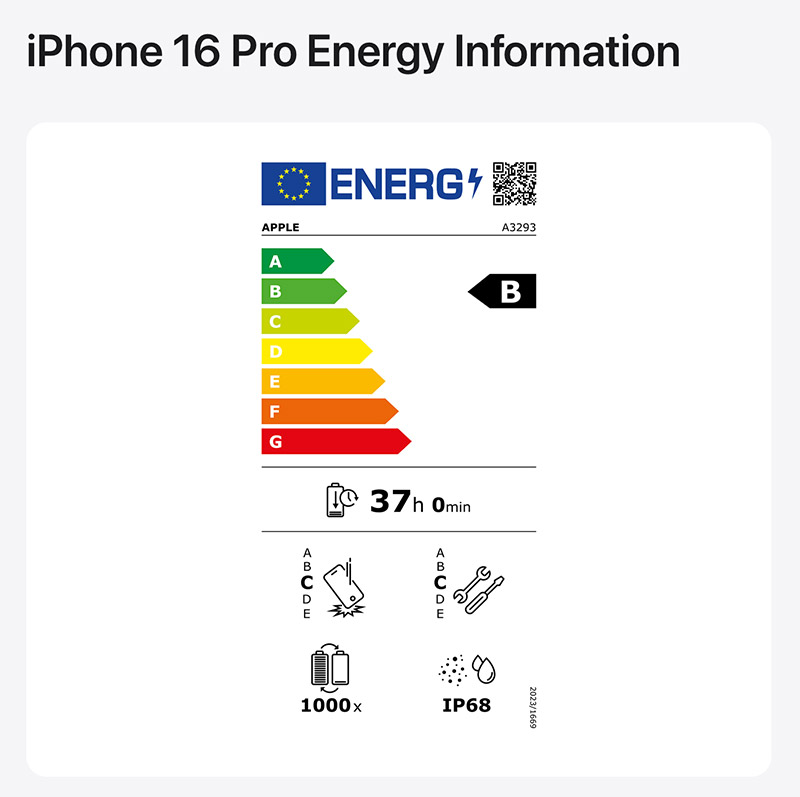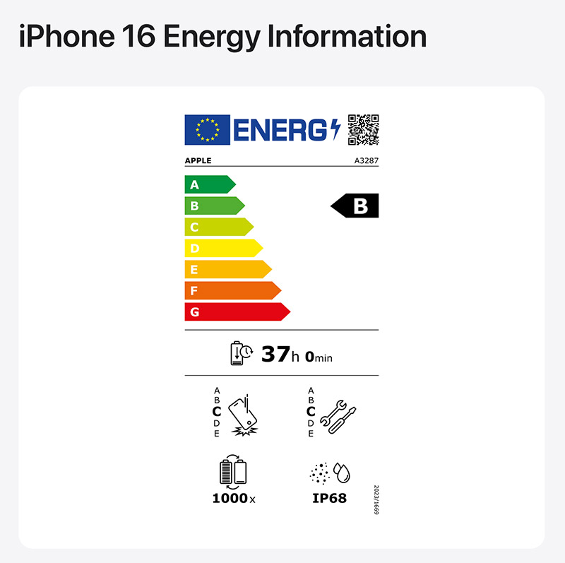 文章来源于互联网:苹果在欧洲为 iPhone 添加能效标签,保守评估自愿降级至 B 级