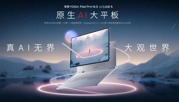 其他方面,联想平板YOGA Pad Pro 14.5 AI元启版搭载14.5英寸高抗反OLED屏幕,分辨率3000×1876,峰值亮度1600nit,支持HDR10+、杜比视界显示。