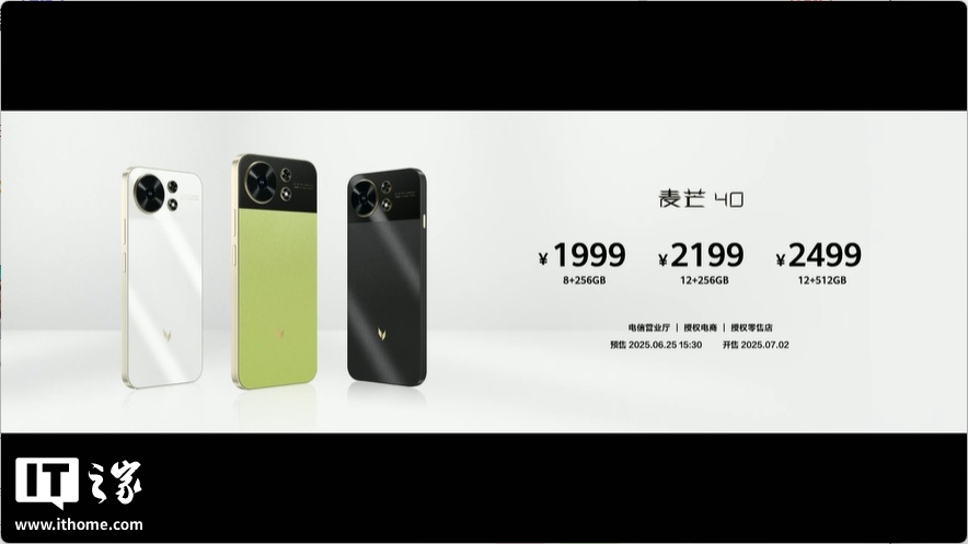 麦芒 40 将于今天 15:30 开启预售,7 月 2 日正式开售,售价如下: