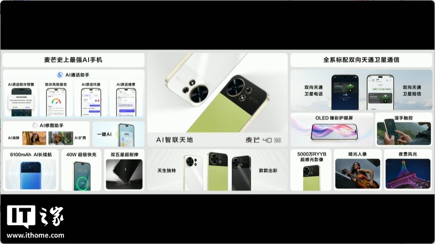IT之家 6 月 25 日消息,今天中国电信旗下麦芒品牌发布了麦芒 40 手机,新机主打 AI 智能化与卫星通信普及化。