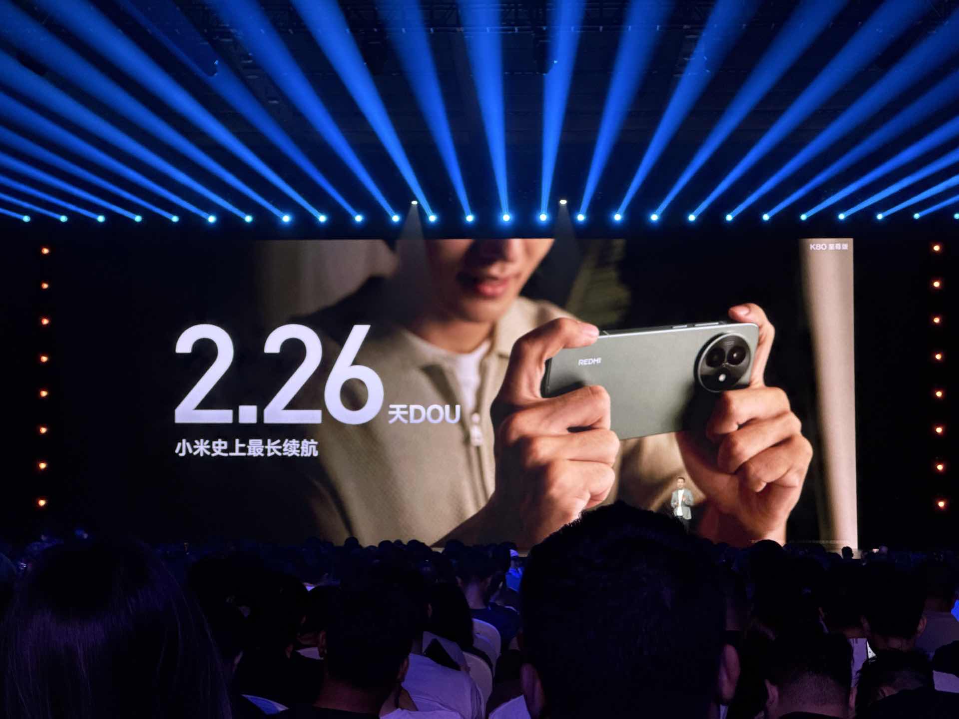 小米 REDMI K80 至尊版手机内置 7410mAh 电池(10% 含硅量、827Wh / L 能量密度),支持 2.26 天 DOU,升级旁路充电 Plus,同时小米首发 100W 闪充。