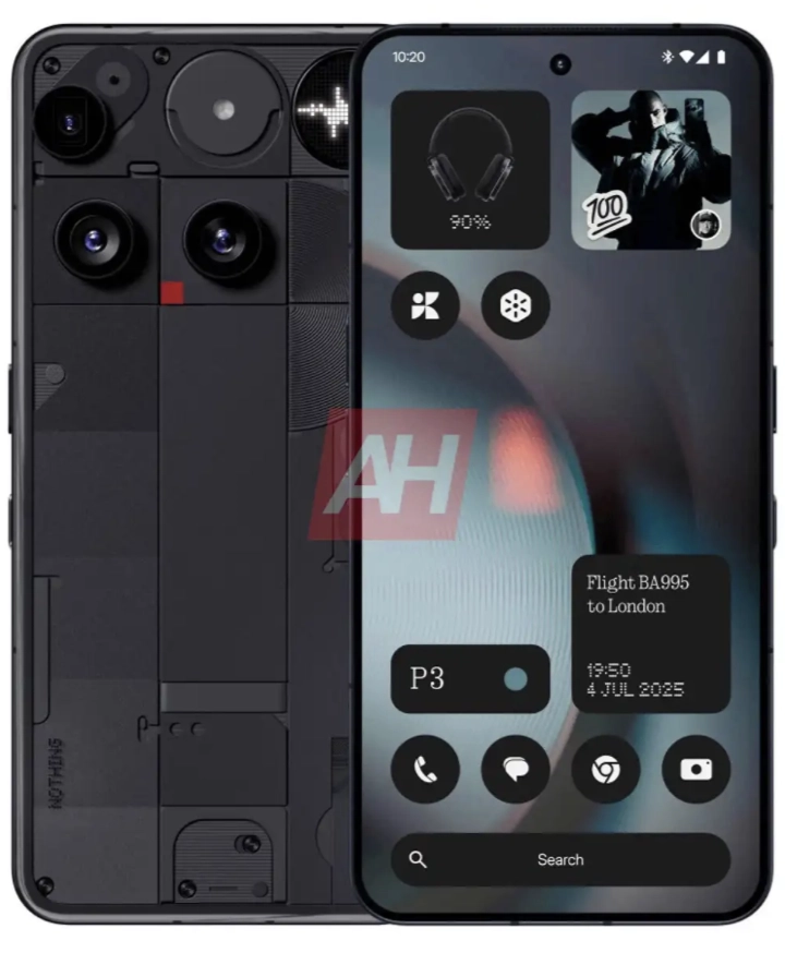 IT之家 6 月 27 日消息,外媒 Android Headlines 公布了 Nothing Phone(3)手机的渲染图,展示了该机的完整设计,其正面采用打孔屏,后置相机三摄模组采用不规则排布方式,同时新增 Glyph Matrix 数显矩阵屏。