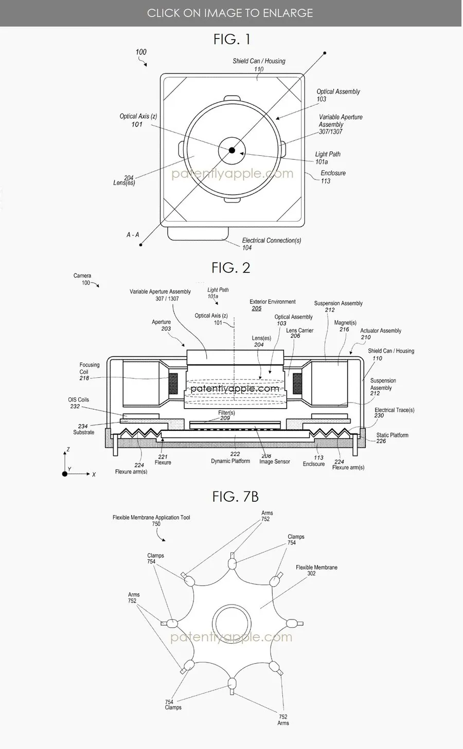IT之家援引博文介绍,苹果的专利申请描述了一种可变光圈系统,主要面向紧凑型相机模块,适用于智能手机等设备,摒弃了传统的机械叶片,转而使用柔软、灵活的薄膜,这种弹性薄膜支持拉伸,通过扭曲和弯曲以打开或关闭光圈。