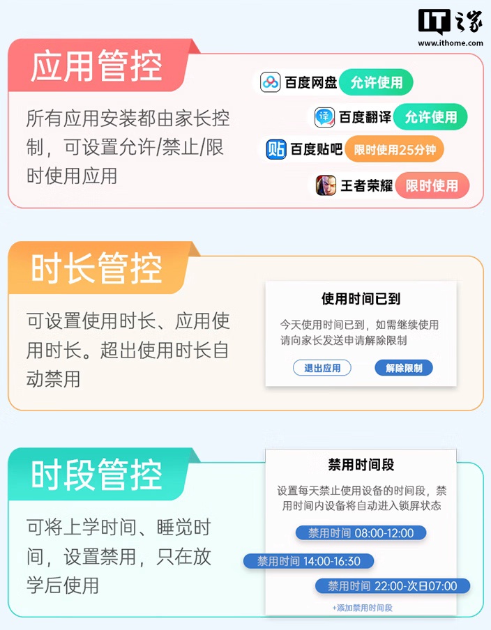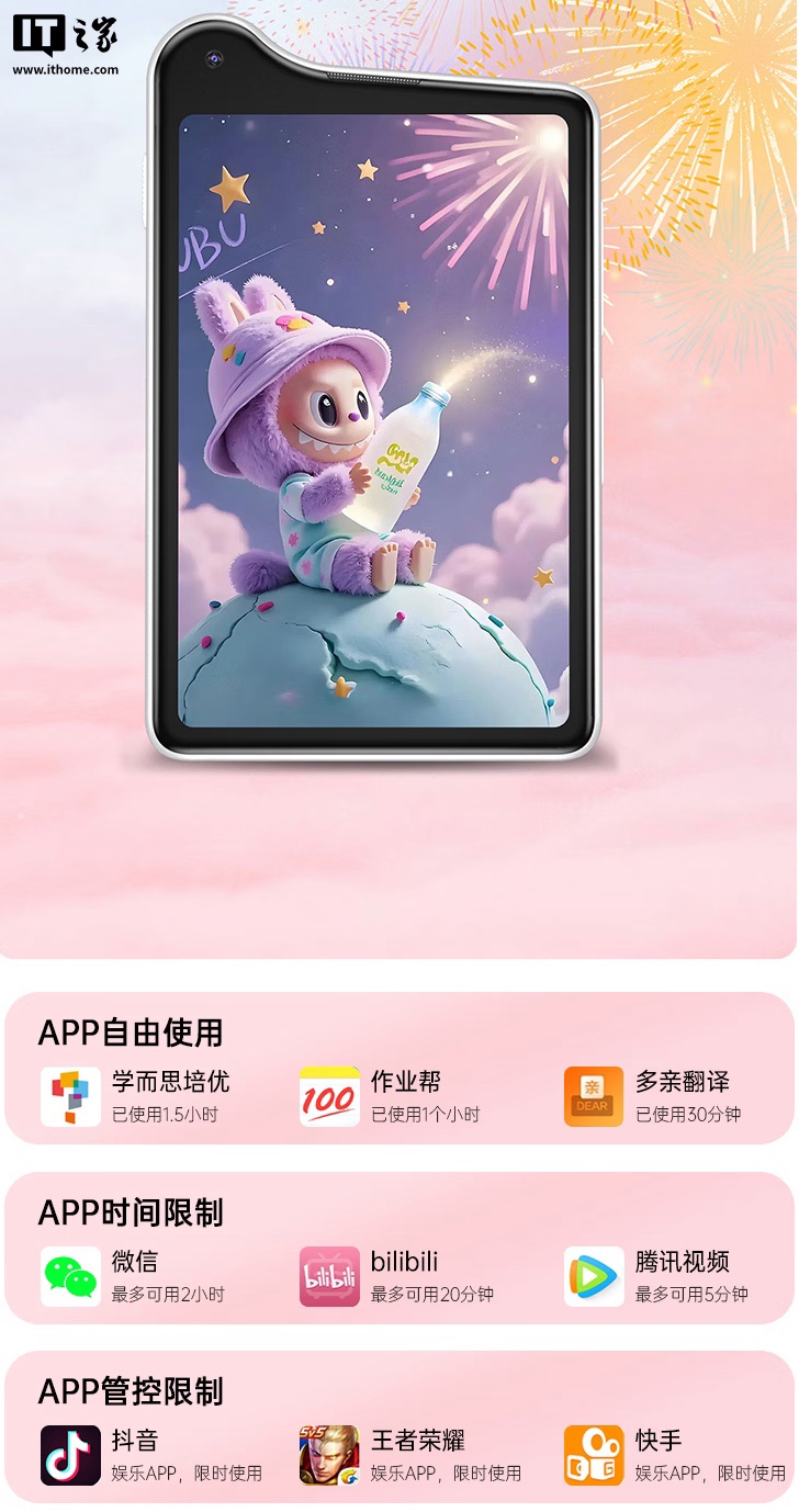 官方称,该机配备定制系统,支持家长管理设置手机 App 使用限制 / 使用时间,支持远程审批安装应用,提供手机定位服务,手机内置小米小爱同学。