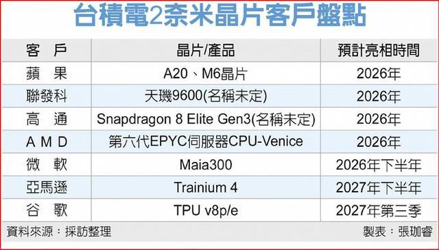 半导体行业人士预计,在 2027 年之前,CSP 大厂的 ASIC 产品将陆续跟进,谷歌的第八代 TPU(张量处理器)、亚马逊 AWS 的 Trainium 4、微软的 Maia 300 等都将进入台积电 2 纳米制程。