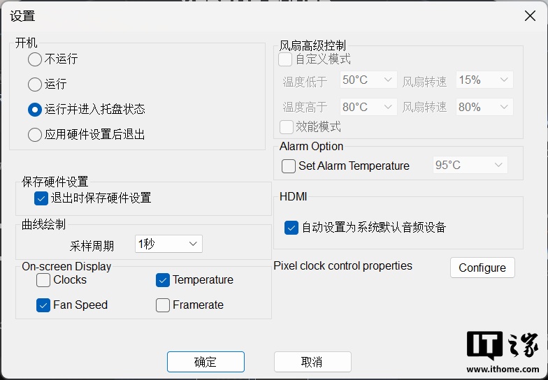 中间部分则是玩家能够进行自定义和调节的功能区,一共分 5 个功能模块,默认展示显卡超频功能选项,支持对电压、GPU 频率、显存频率、功耗以及温度阈值进行调节,适合有一定超频知识和动手能力的硬核玩家操作。