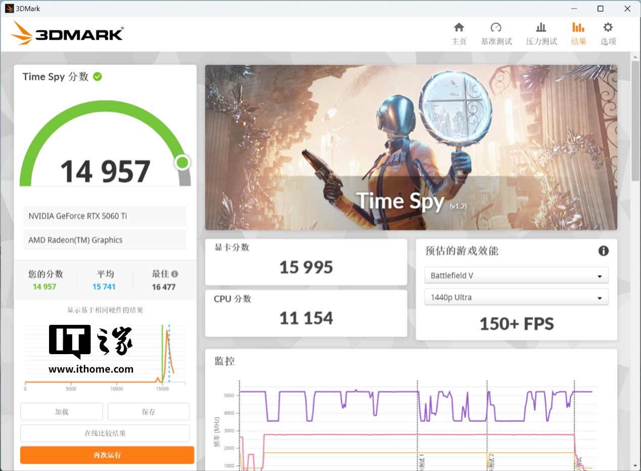 RTX 5060 Ti 的显卡分数为 15995 分;
