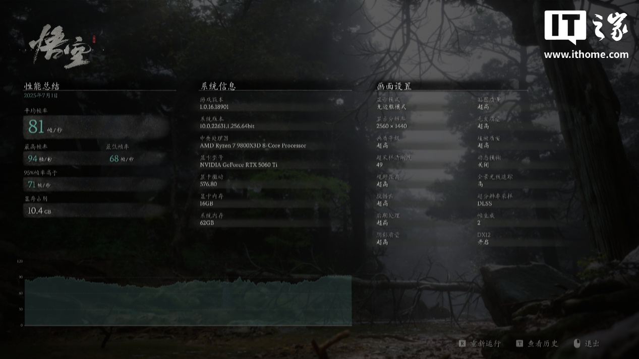 最后是我们的老朋友《黑神话:悟空》,目前它的 Steam 销量再次登顶国区榜首,热度极高。由于采用了全景光线追踪技术,并使用虚幻引擎 5 (UE5) 开发,即便官方做了细致的性能优化,但对于显卡的硬件性能压力十足。