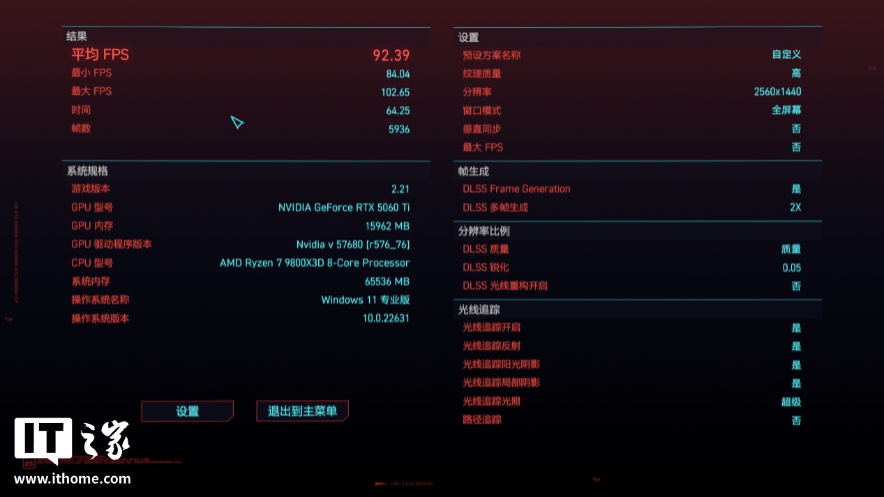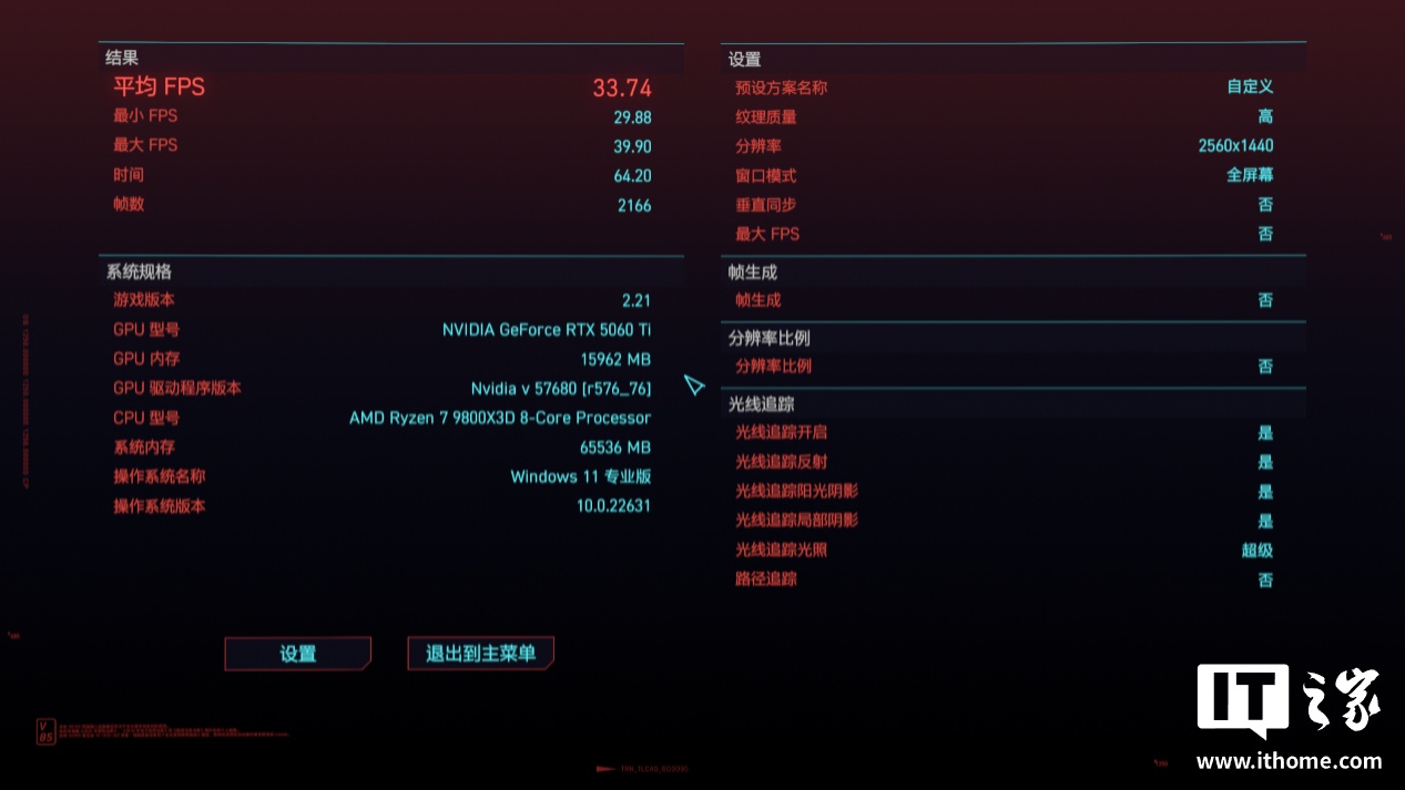 在 2K 分辨率下,即使不开启光追选项,降一档画质等级到超高,游戏平均帧数只有 63 帧,勉强满足基本的流畅游戏需求。