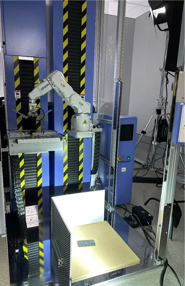 实际上,为了更接近现实生活场景,苹果开发了一个能够以不同角度在不同表面上(包括粒子板、花岗岩和大理石板)跌落设备的机器人。而且,每次跌落都会通过一个应用程序进行分析。