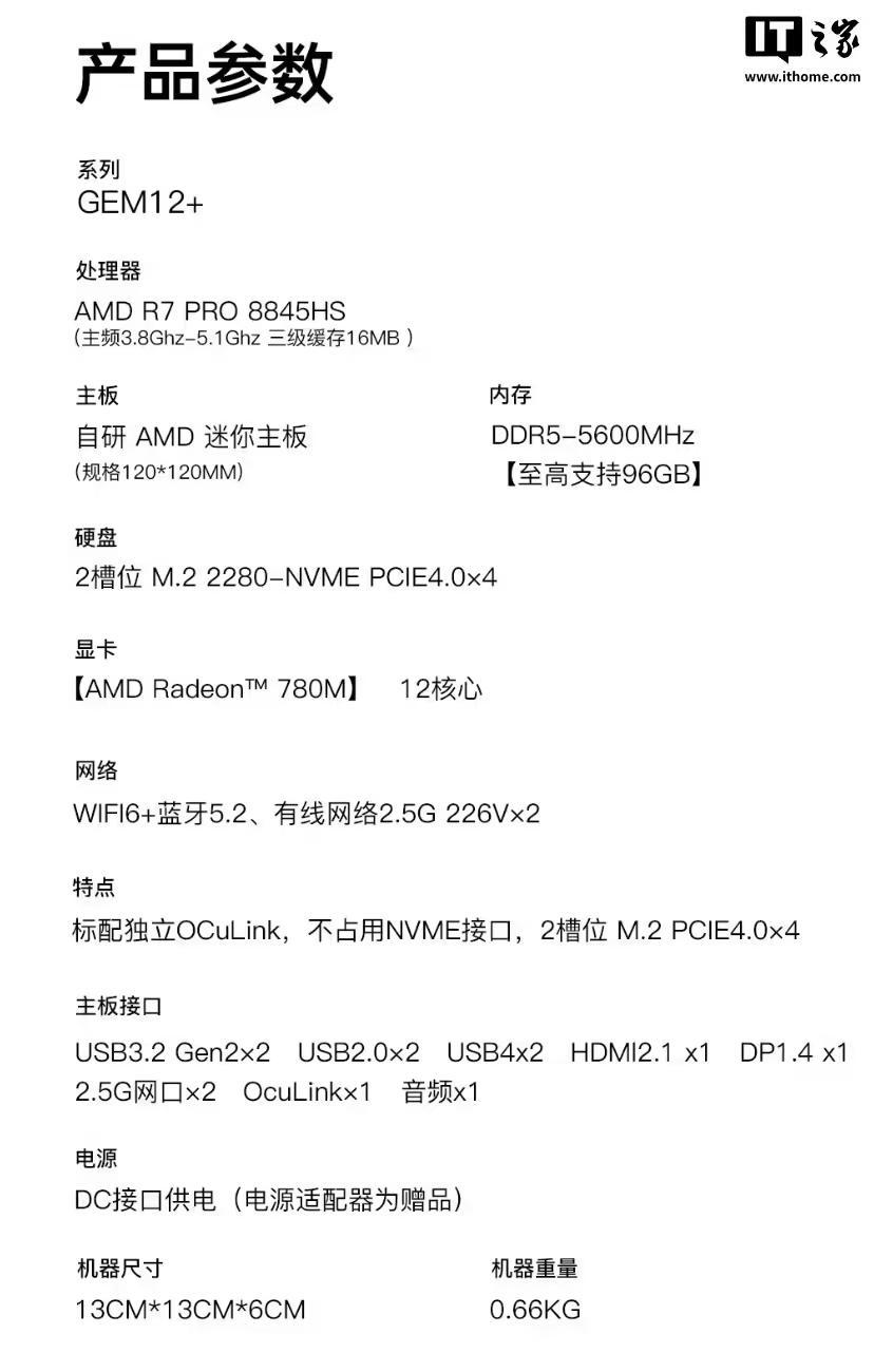 文章来源于互联网:凤凰网-天钡推出新款GEM12+迷你主机:搭锐龙7 Pro-8845HS,2158元起