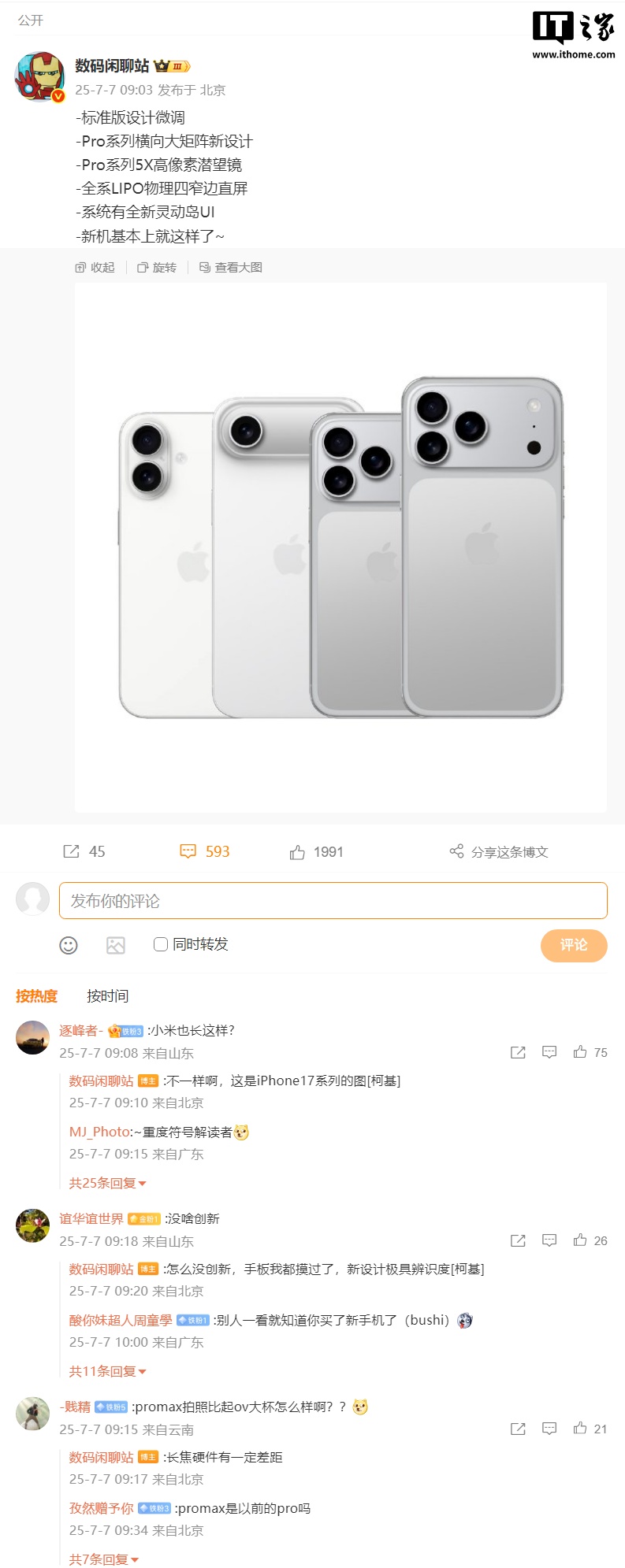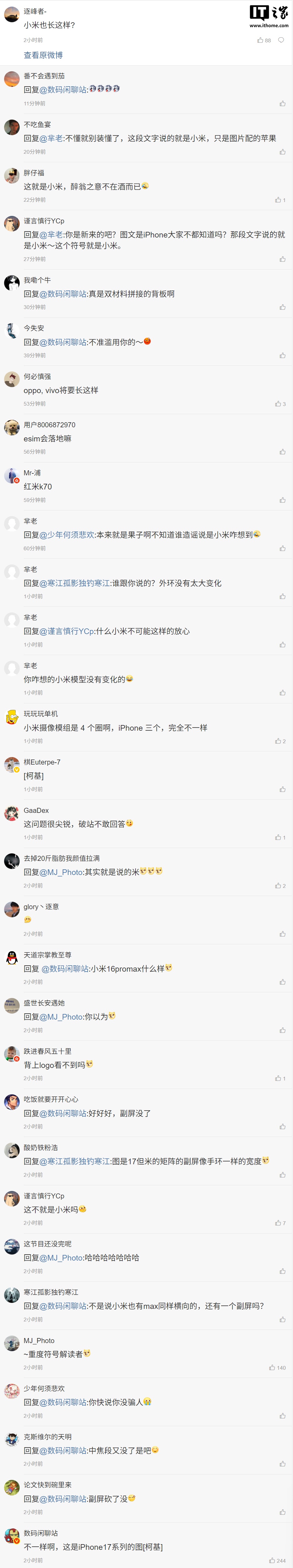 IT之家注意到,博主提到该爆料配图并非小米,而是 iPhone 17 系列