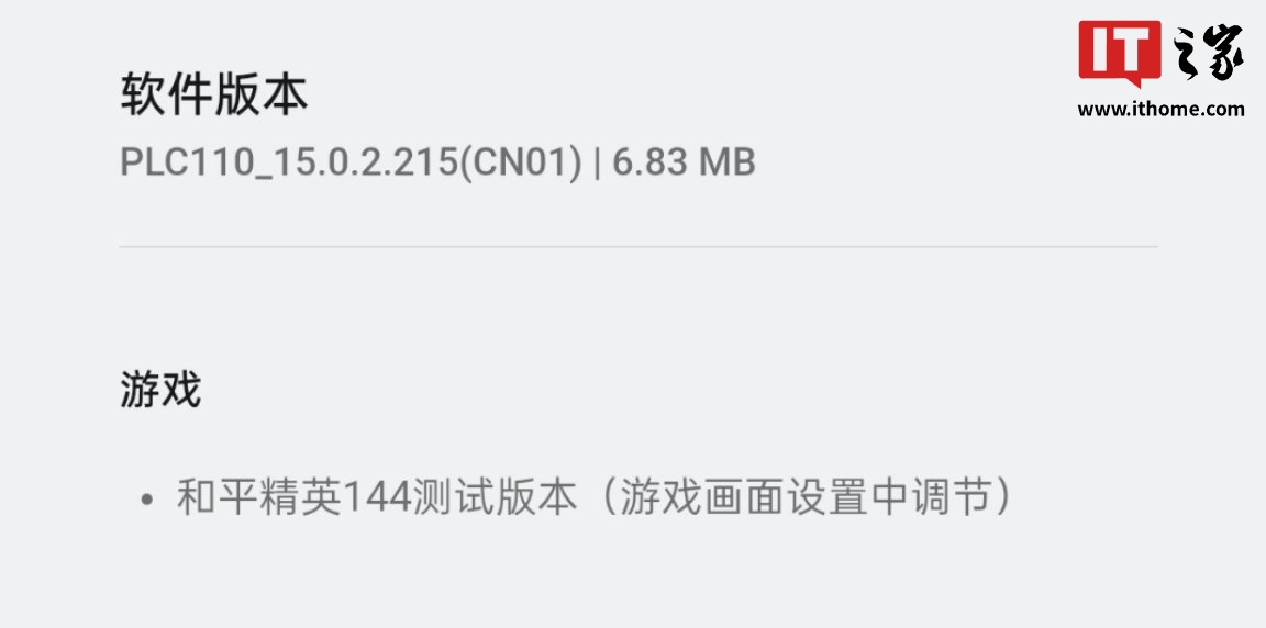 IT之家 7 月 8 日消息,据用户反馈,一加 Ace5 至尊版手机开启新版本系统推送,升级包大小约 6.83MB、版本号为 15.0.2.215(CN01),适配了腾讯《和平精英》手游 144Hz 高刷。