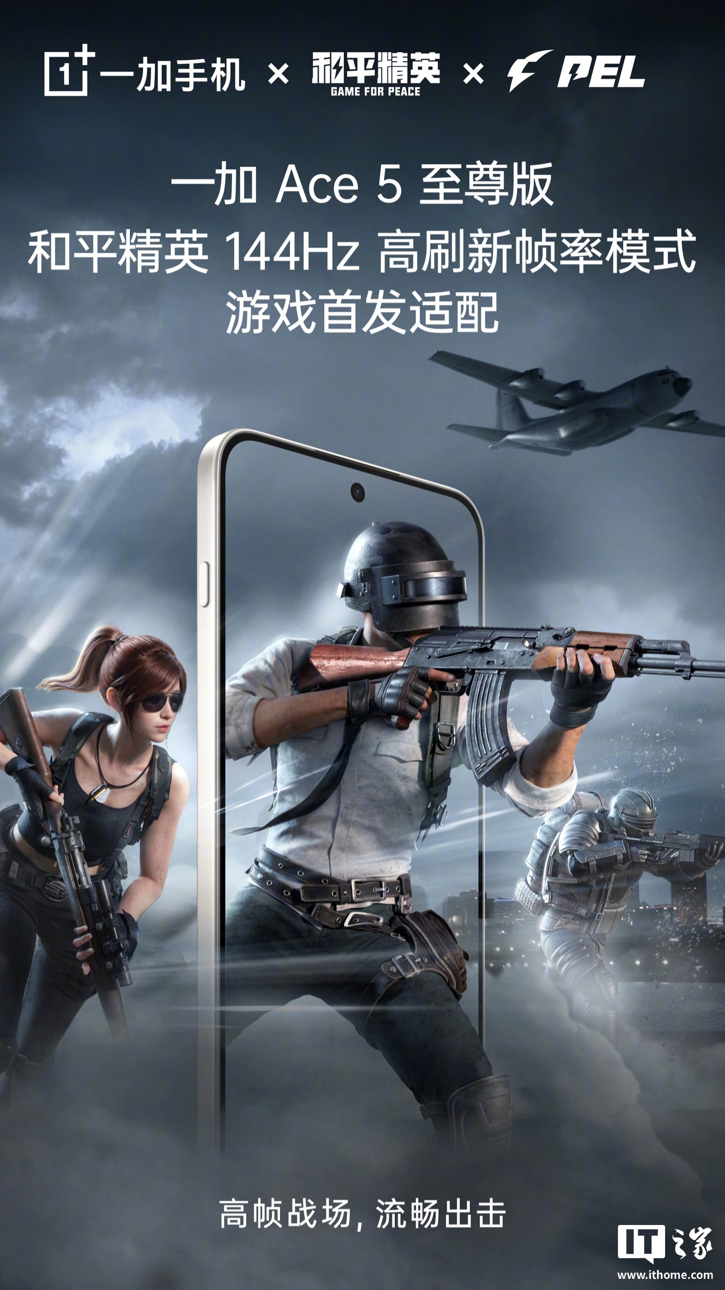IT之家注意到,一加手机官方昨日也发文宣布,Ace5 至尊版手机首发适配《和平精英》手游 144Hz 高刷新帧率模式。同时该机还是 2025PEL 夏季赛官方比赛用机。