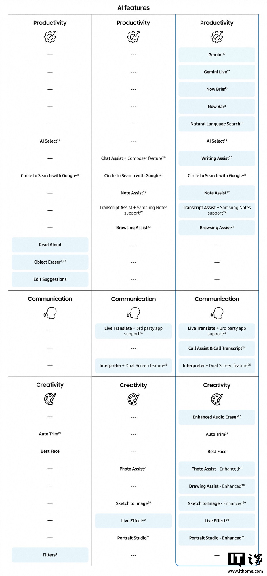 IT之家整理相应机型参数如下: