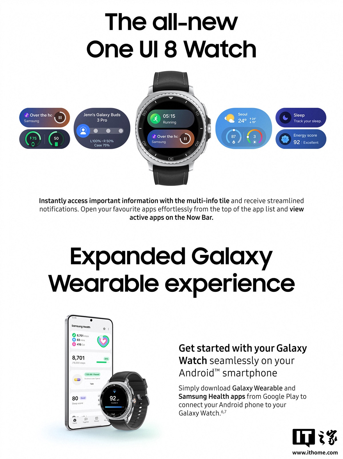 该机提供 1.3 英寸表镜,内置 2GB RAM,匹配 445 毫安时电池。主打能量评分、压力监测、运动教练,搭载 One UI 8 Watch 界面。