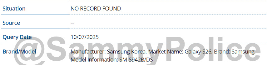 而现在标准版 Galaxy S26 手机型号也现身该数据库,型号为 SM-S942B(国际版)和 SM-S942U(美版)。