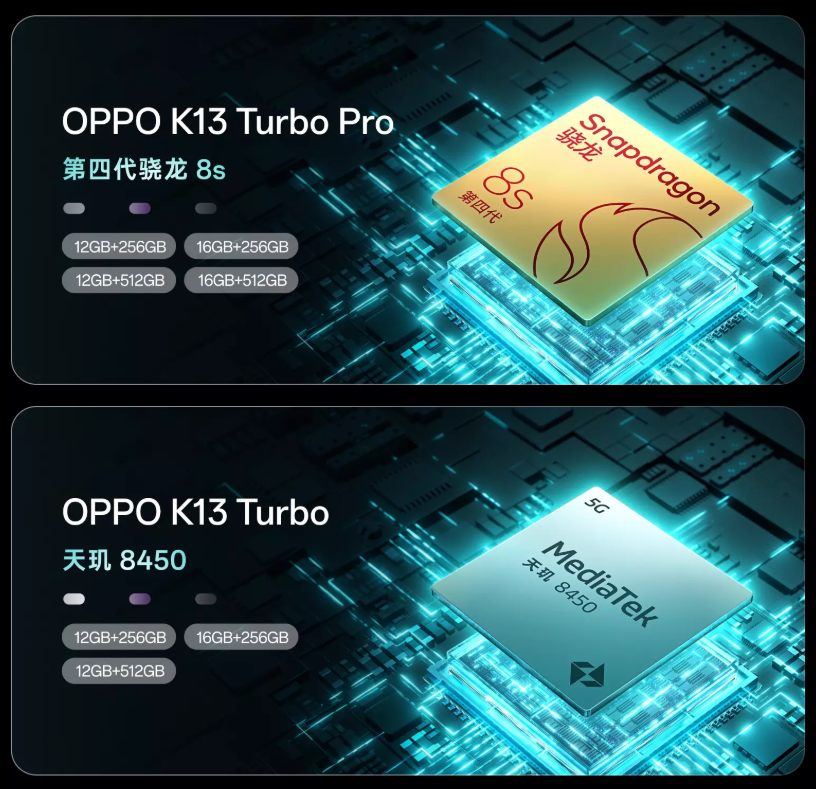 OPPO K13 Turbo / Pro 手机处理器公布:天玑 8450、骁龙 8s Gen4